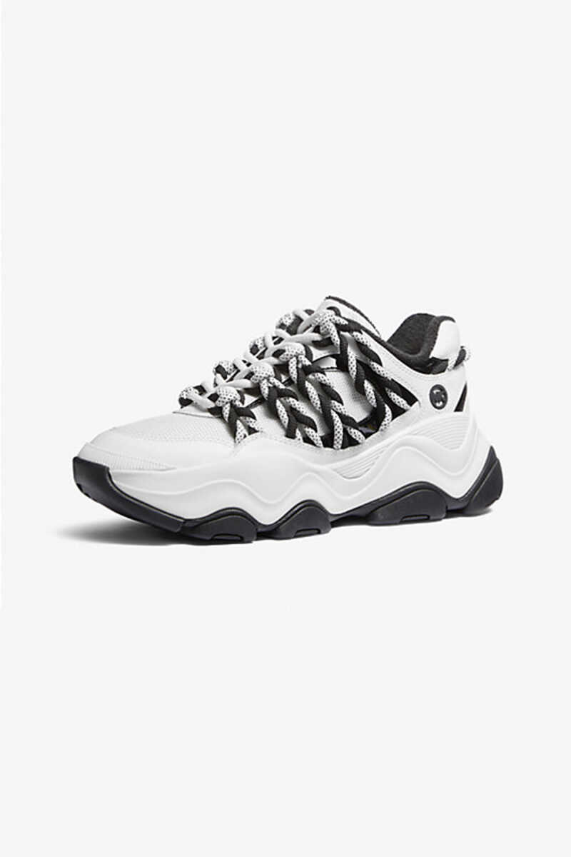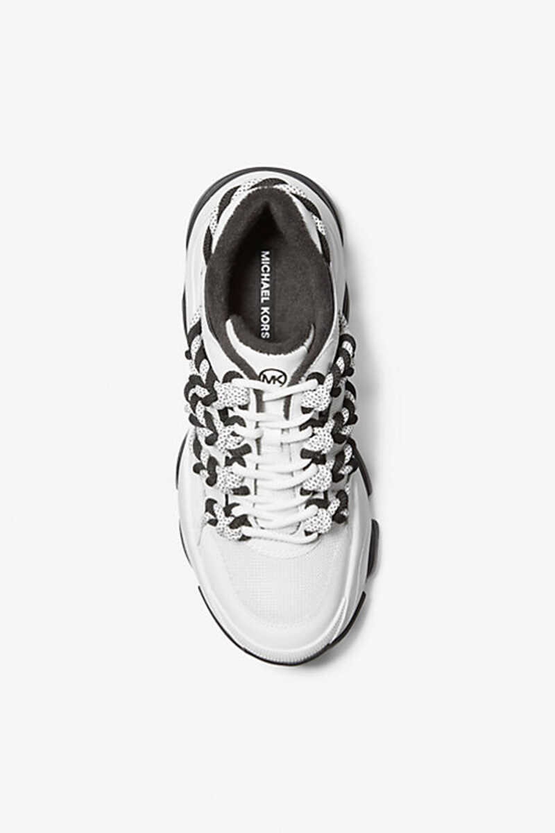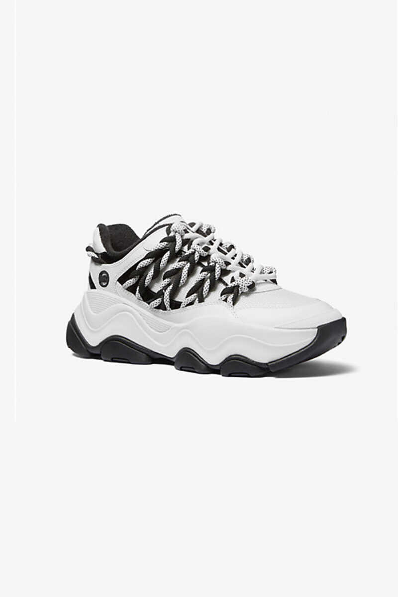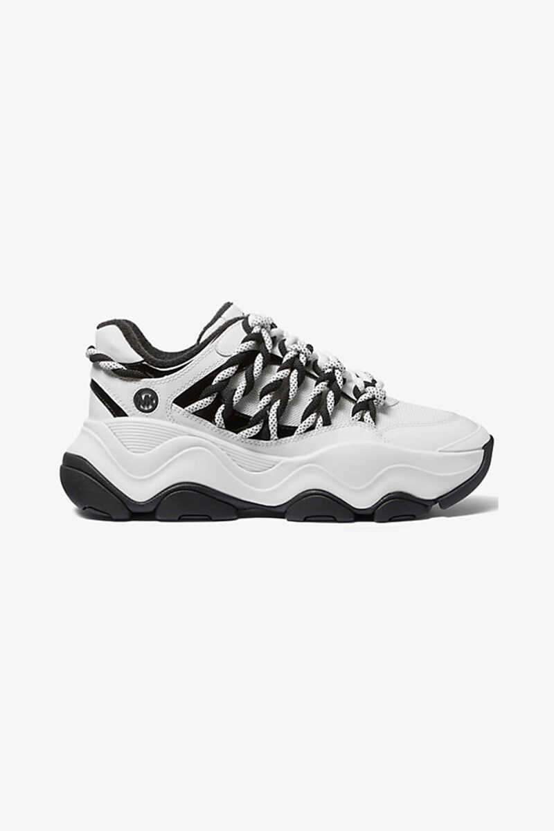 Michael Kors Atlas Cord Sneaker, cesur ve hacimli (chunky) tasarımıyla sokak modasının enerjisini yansıtıyor. Beyaz ana rengin üzerine kontrast oluşturan siyah detaylar ve ayakkabının yanlarından geçen kalın, kordon görünümlü bağcıklar, modele özgün ve iddialı bir karakter katmaktadır. Dinamik dalgalı tabanı modern bir estetik sunarken, günlük kullanım için konforlu bir yapı sağlar. Bu Michael Kors sneaker, stilinde fark yaratmak isteyenler için mükemmel bir tercihtir.