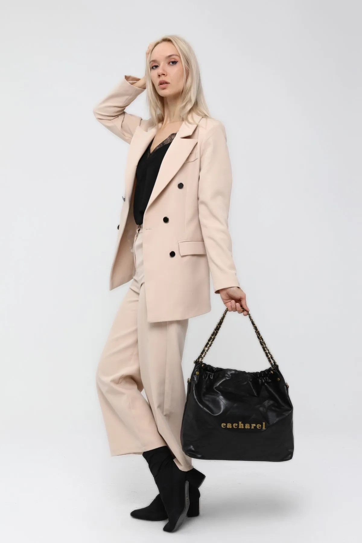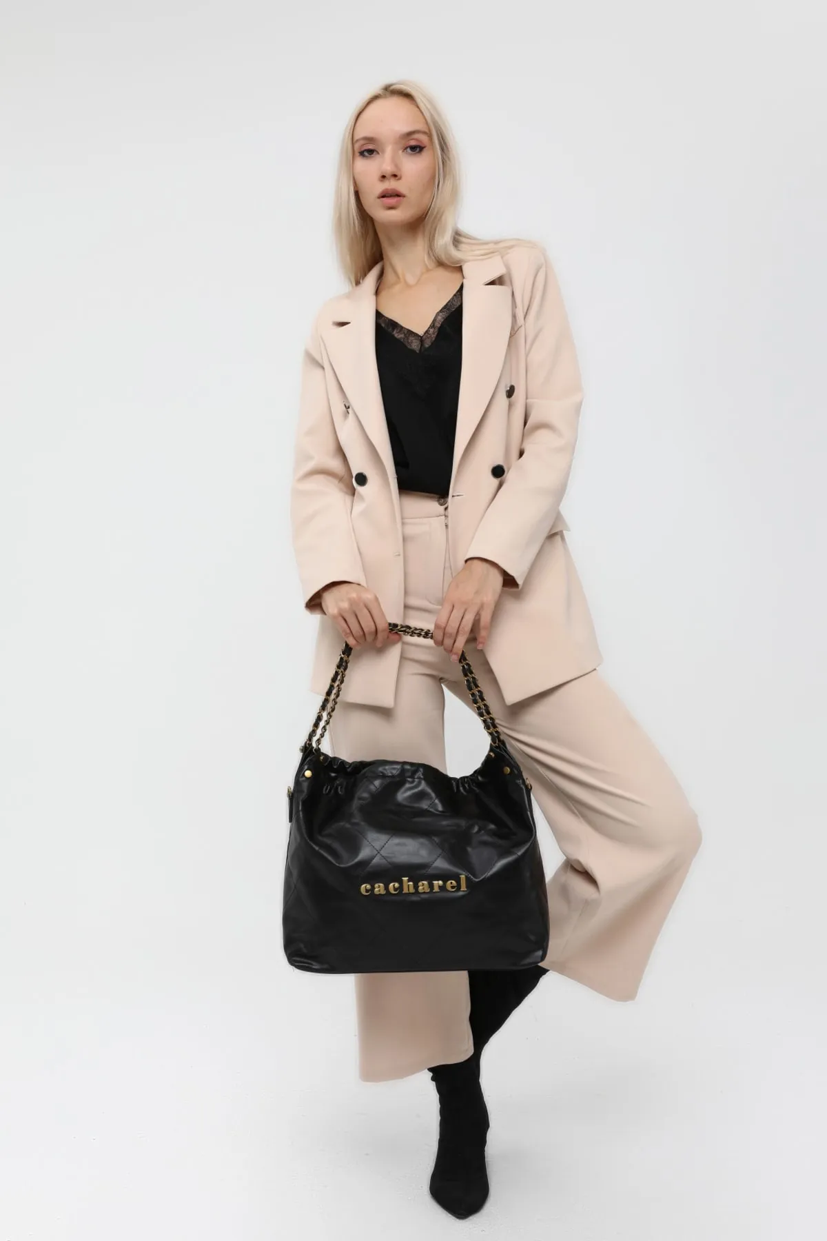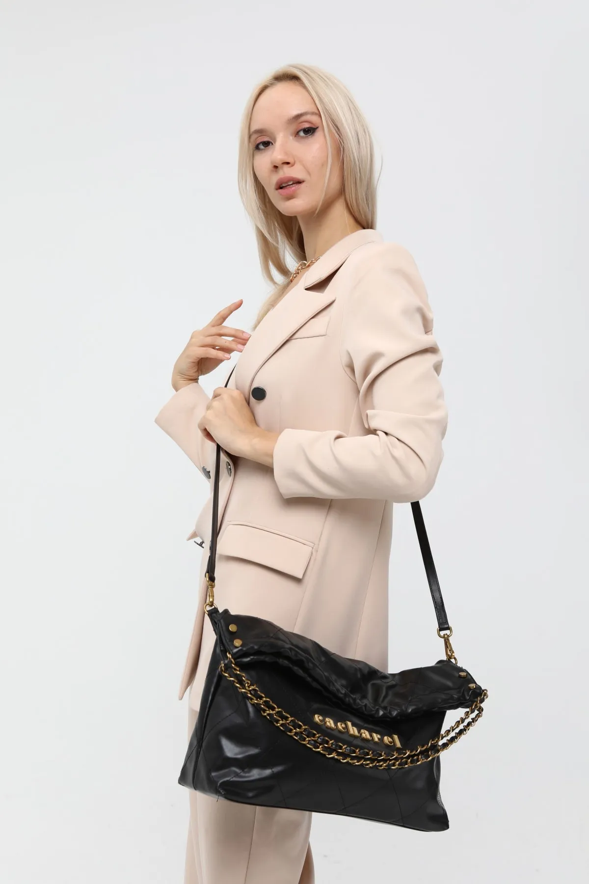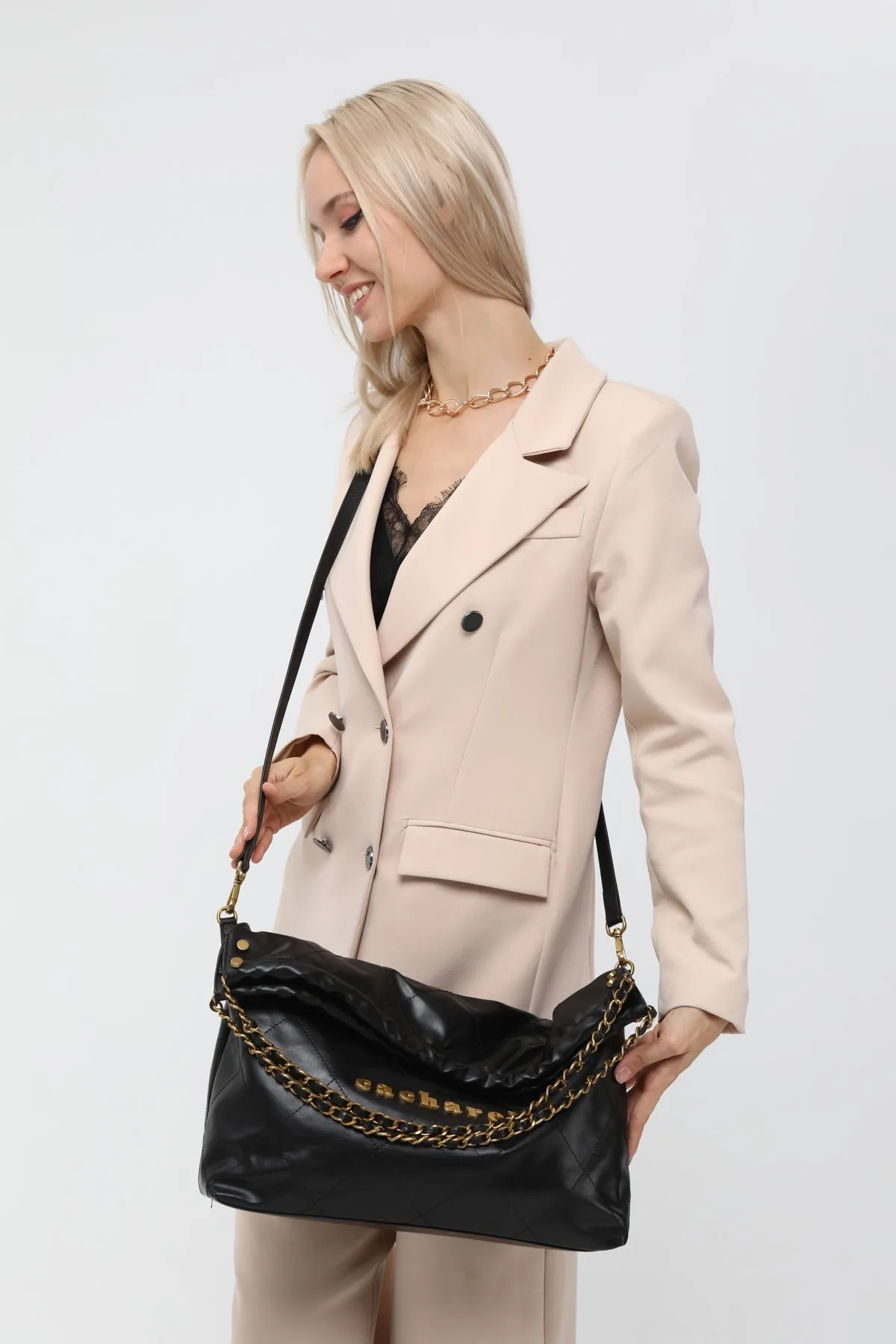 CACHAREL KADIN DESENLİ OMUZ ÇANTASI C-063-SİYAH
