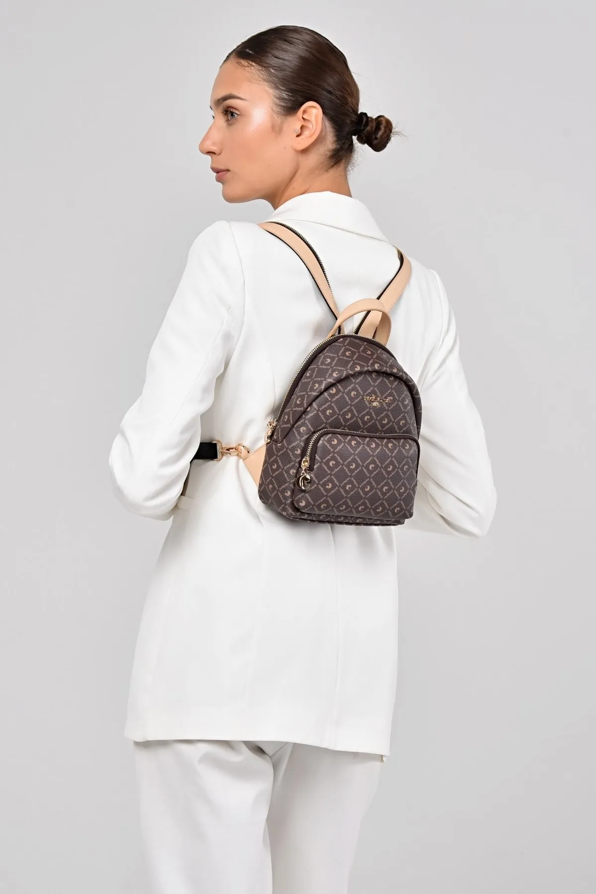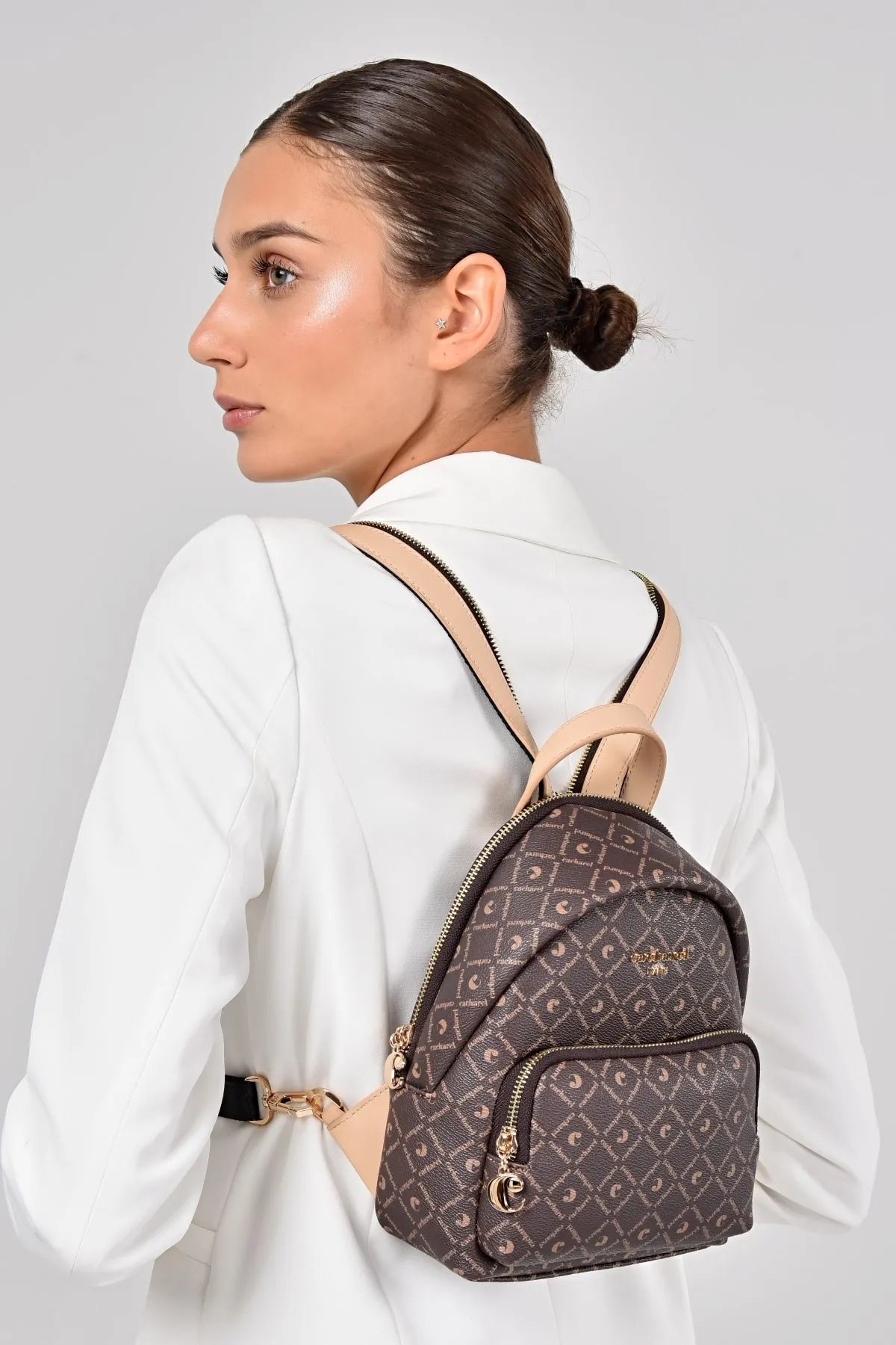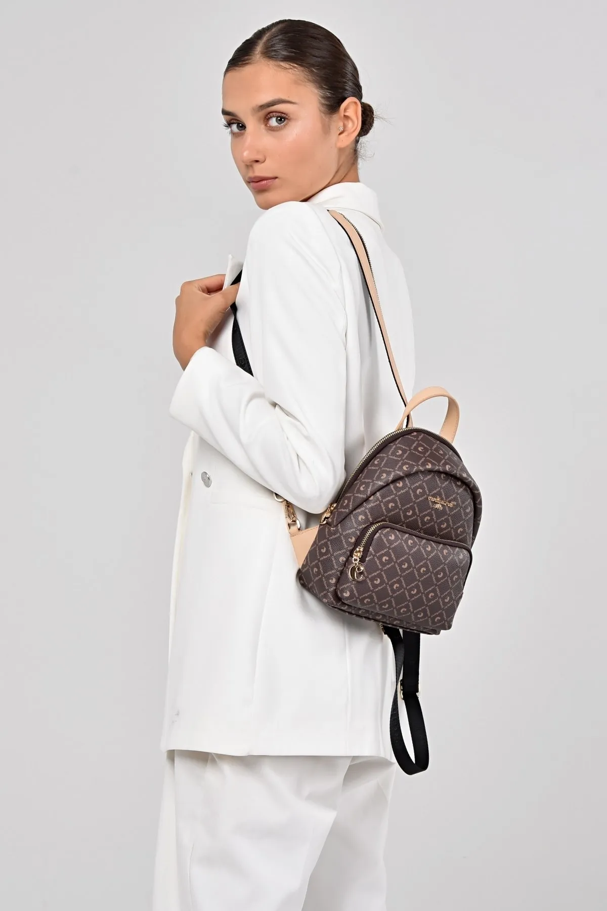 CACHAREL KADIN DESENLİ SIRT ÇANTASI C-051-KAHVE BEJ