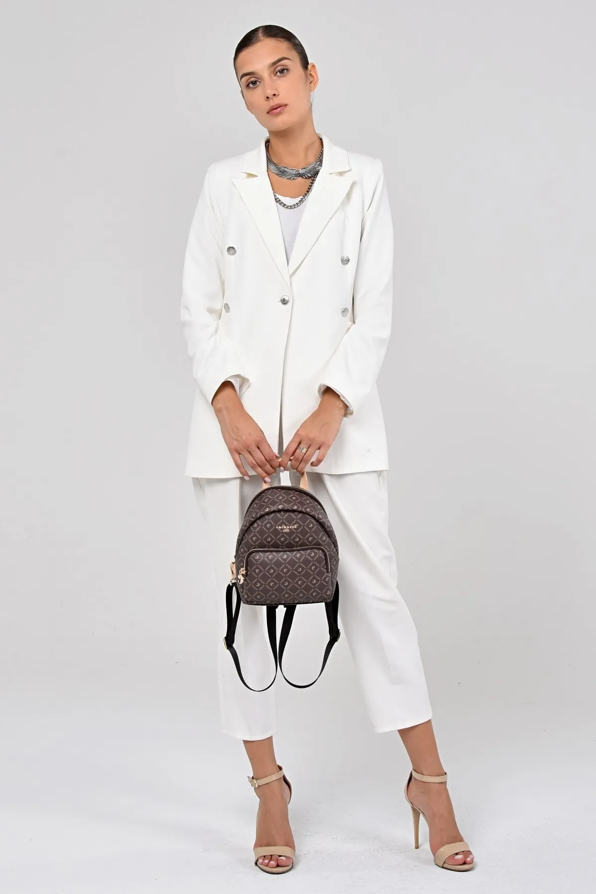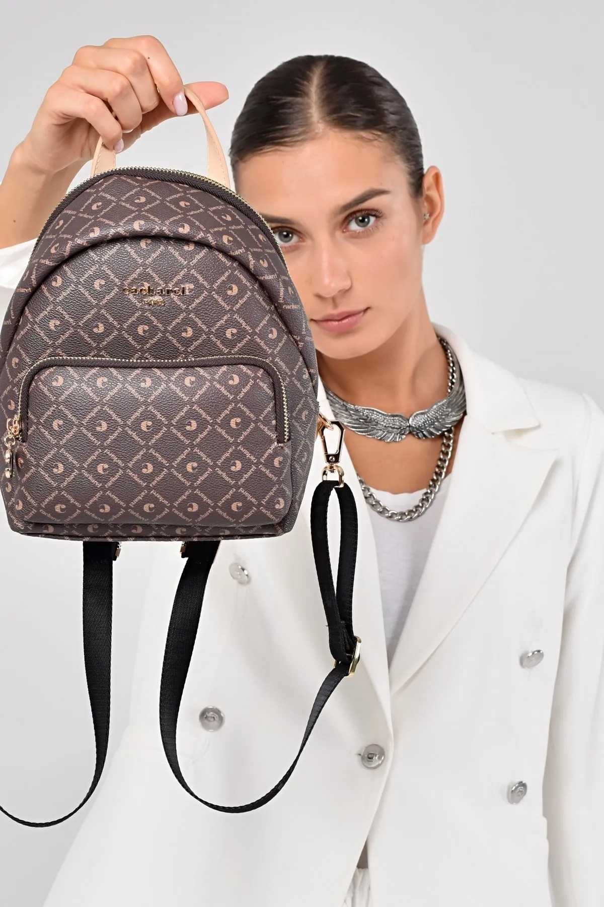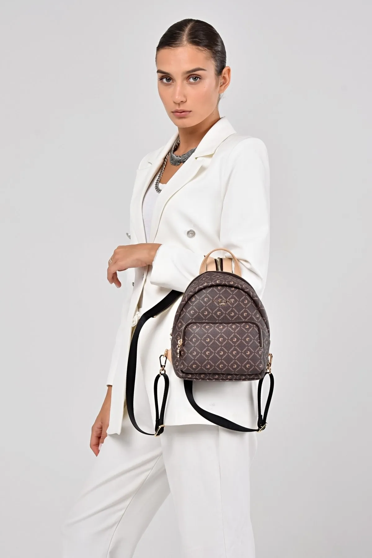 CACHAREL KADIN DESENLİ SIRT ÇANTASI C-051-KAHVE BEJ