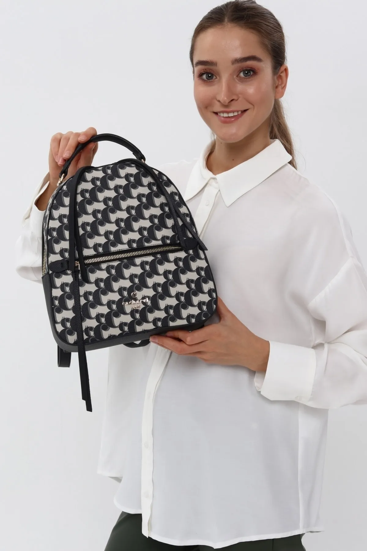 CACHAREL KADIN DESENLİ SIRT ÇANTASI C-065 - SİYAH