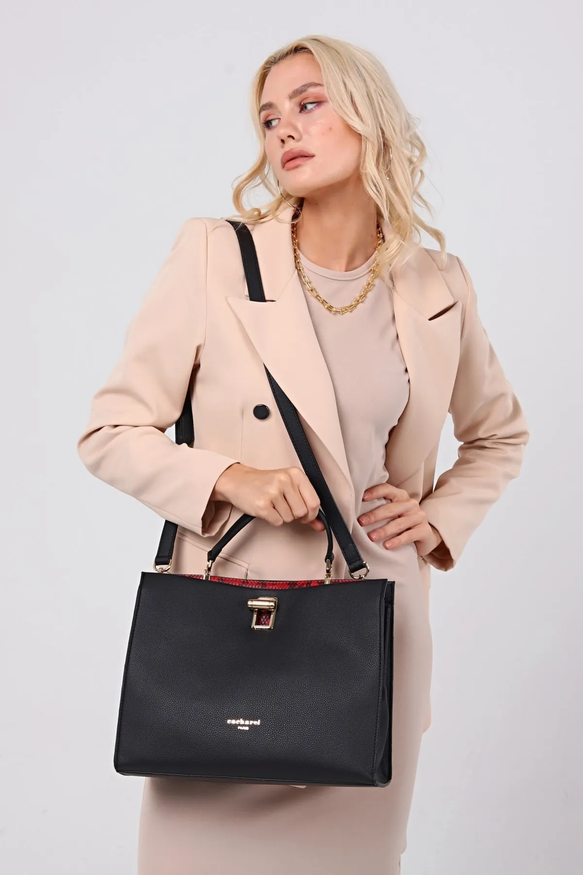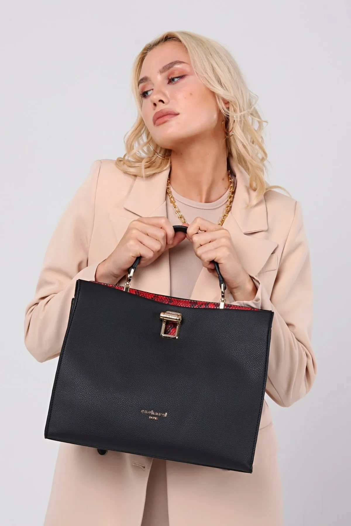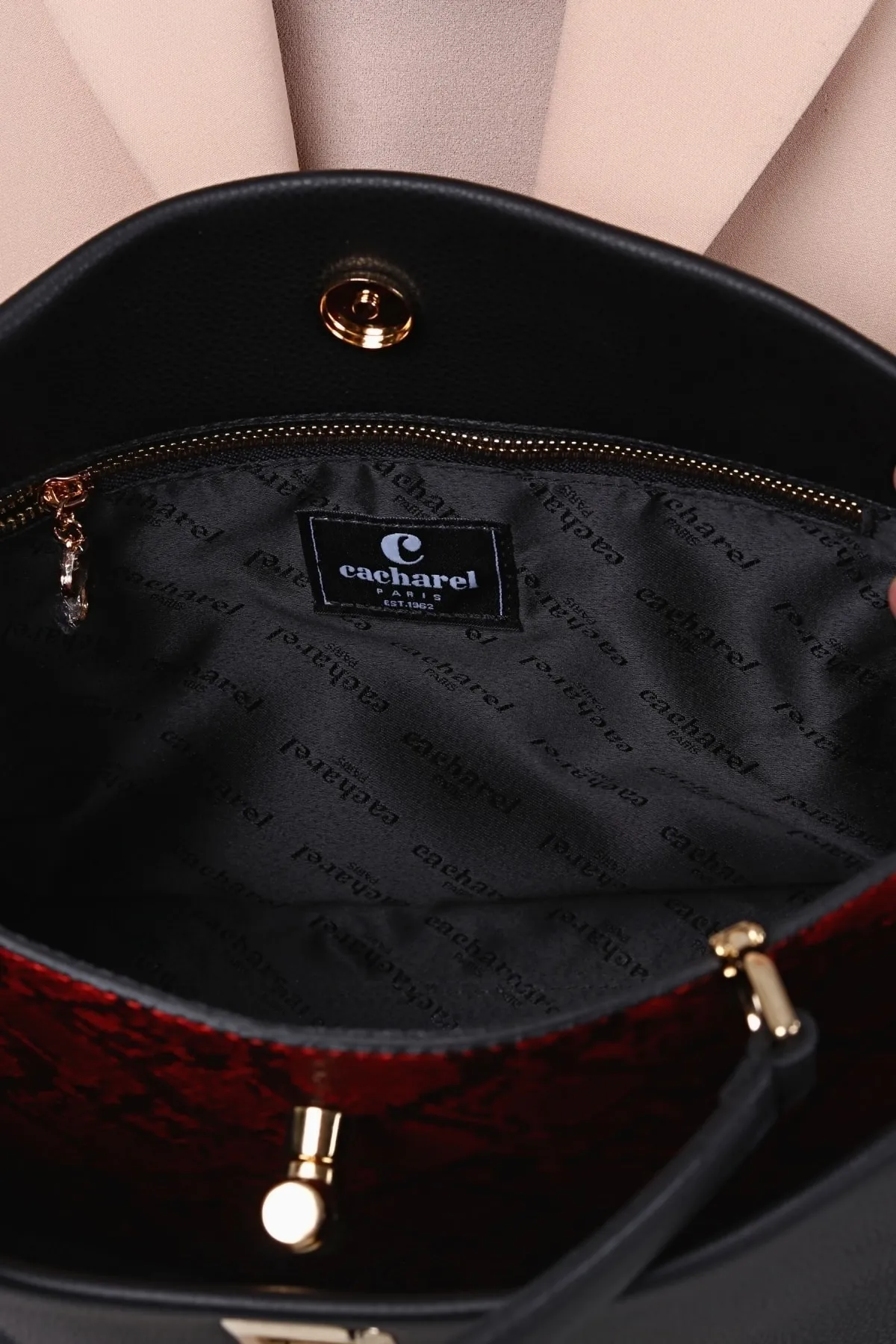 CACHAREL KADIN EL VE OMUZ ÇANTASI-C-053-SİYAH-KIRMIZI