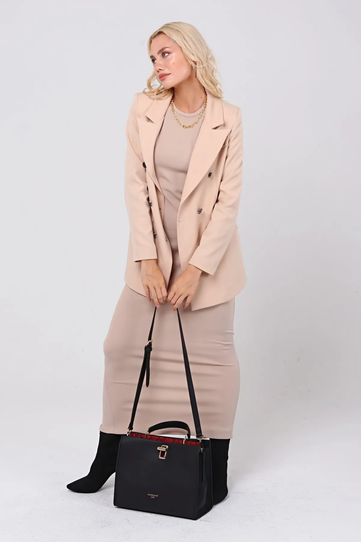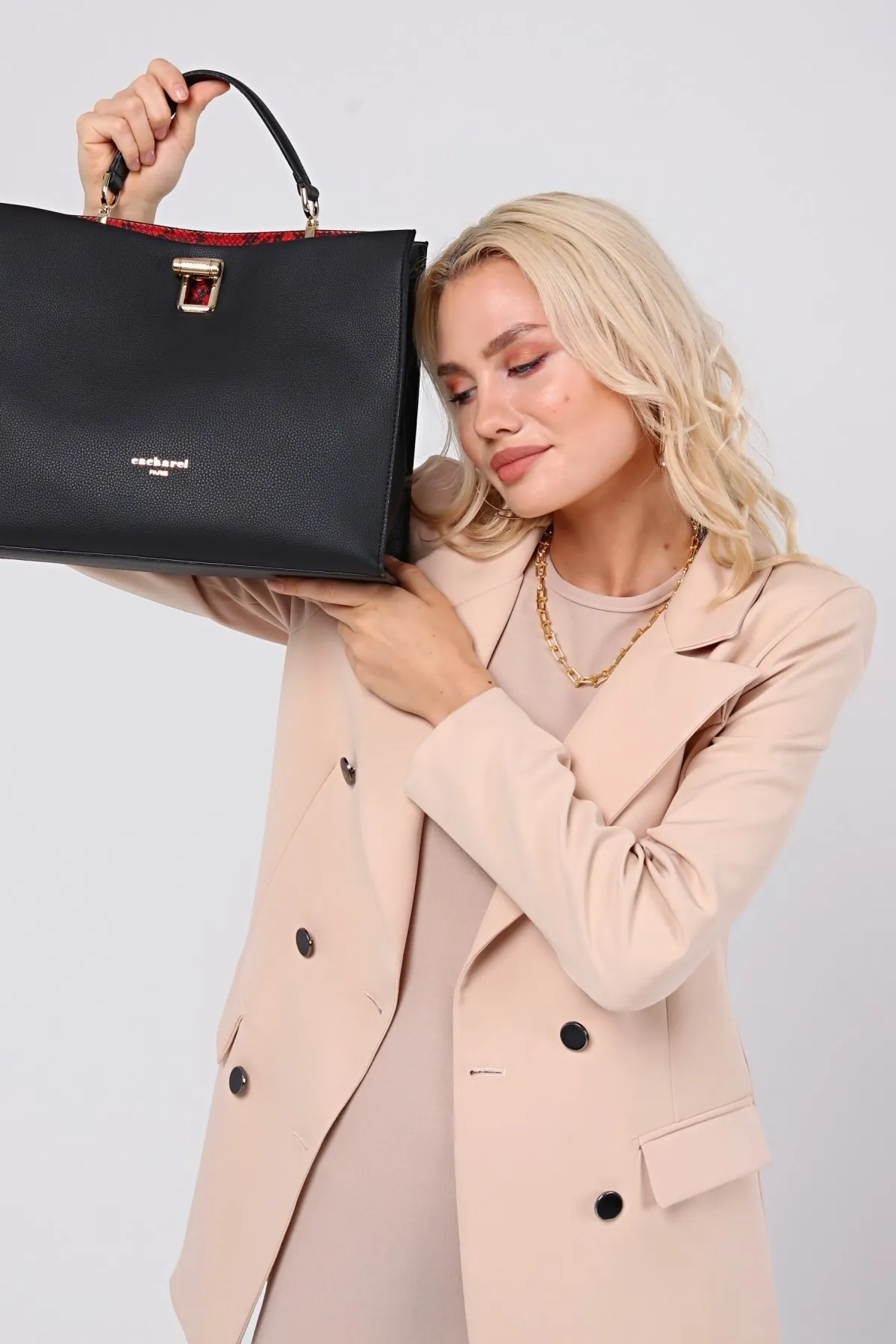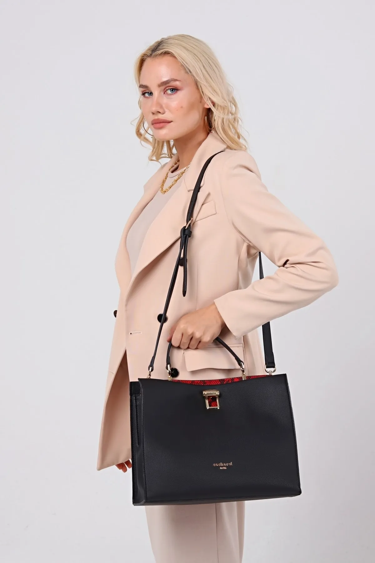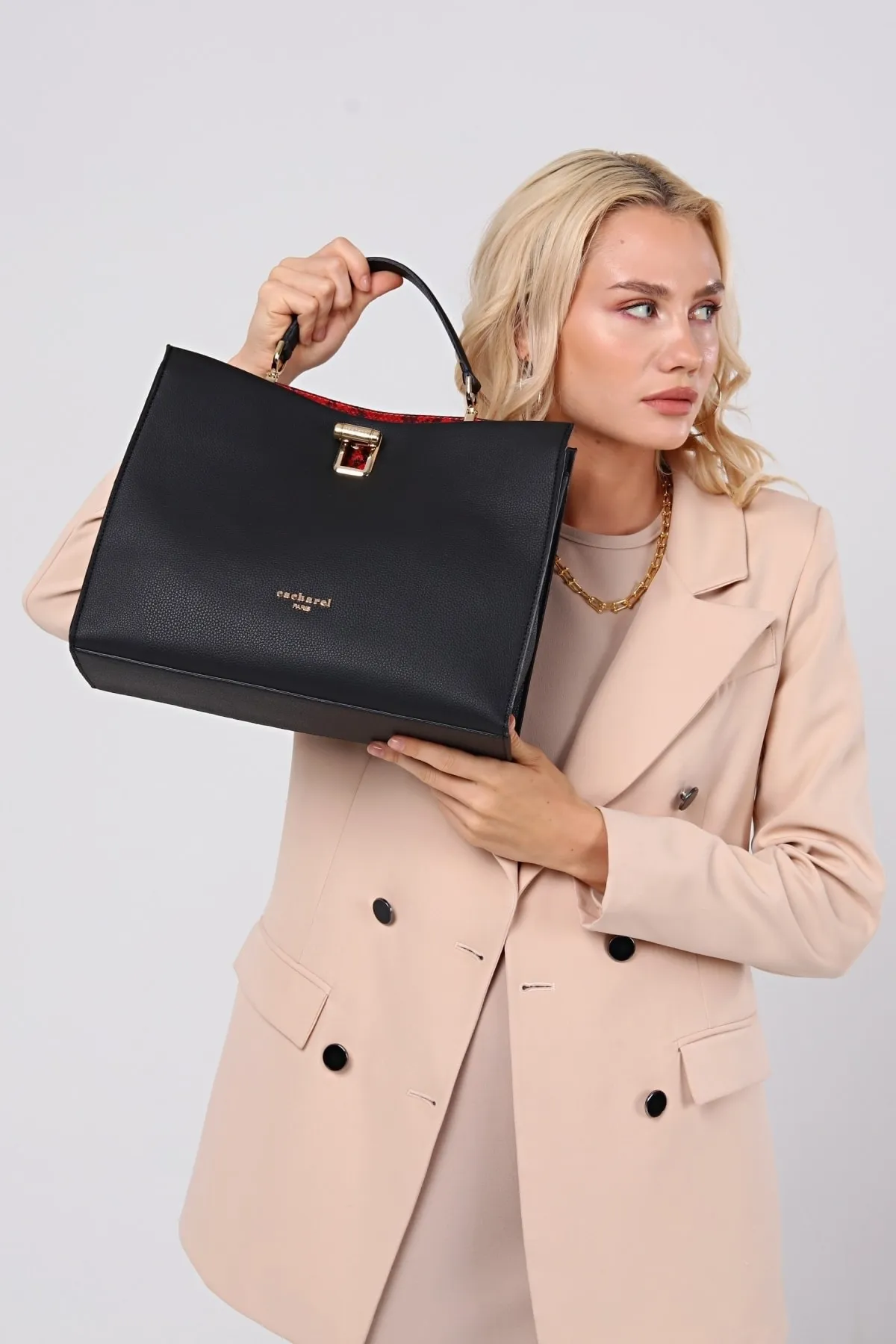CACHAREL KADIN EL VE OMUZ ÇANTASI-C-053-SİYAH-KIRMIZI