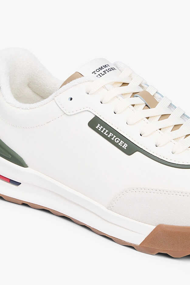 Geçmişin ikonik koşu ayakkabısı silüetini modern detaylarla günümüze taşıyan bu spor ayakkabı, "Retro Runner" serisinin zamansız stilini yansıtıyor. %90 sığır yarma deri ve poliüretan karışımlı üst yüzeyi, hem dayanıklılık sağlar hem de fildişi tonunun yumuşak dokusuyla premium bir görünüm sunar. Tasarımın yan kısmında yer alan yeşil şerit üzerindeki marka logosu ve topuk kısmındaki uyumlu yeşil detay, ayakkabıya sportif bir karakter katar. Beyaz orta taban ve zemin tutuşunu artıran bal rengi kauçuk dış taban kombinasyonu, vintage estetiği tamamlarken gün boyu konforlu adımlar atmanızı sağlar.