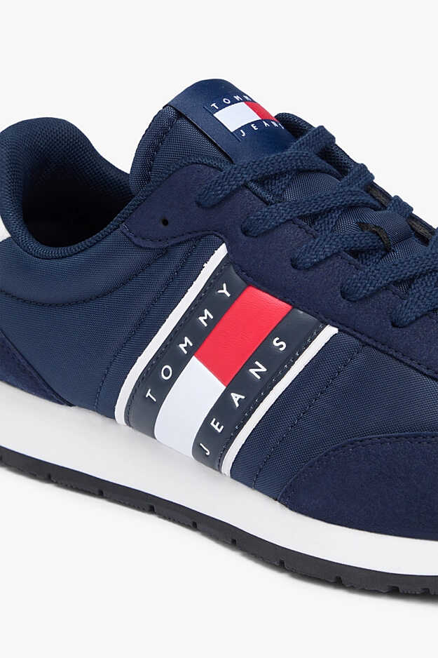 Klasik koşu ayakkabısı silüetini modern sokak stiliyle harmanlayan bu spor ayakkabı, koyu lacivert renginin asaletini sportif detaylarla buluşturuyor. %100 geri dönüştürülmüş polyesterden üretilen yapısı, sürdürülebilir modaya katkı sağlarken hafif ve konforlu bir kullanım sunar. Yan kısımdaki ikonik renkli şerit detayı ve topuktaki beyaz vurgu, tasarıma dinamik bir karakter kazandırır. Gün boyu rahatlık sağlayan taban yapısı ve zamansız tasarımıyla, hem spor hem de günlük kombinlerinizin vazgeçilmez bir parçası olacak.