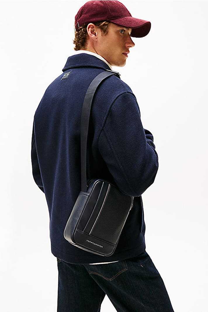 Lüks çakıl dokulu dış yüzeyi ve sade tasarımıyla bu çapraz askılı çanta, temel eşyalarınızı her zaman elinizin altında tutmanızı sağlar. Sofistike bir görünüm sunan model, ön yüzündeki dikey renkli şerit ve yazı logosu gibi zarif detaylarla öne çıkar. Fermuarlı ana bölmesi günlük ihtiyaçlarınız için güvenli bir saklama alanı sunarken, ayarlanabilir çapraz askısı kişiye özel konforlu bir taşıma deneyimi vadeder.