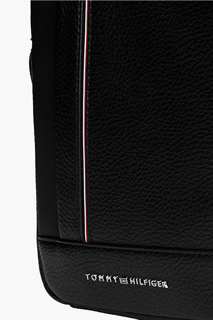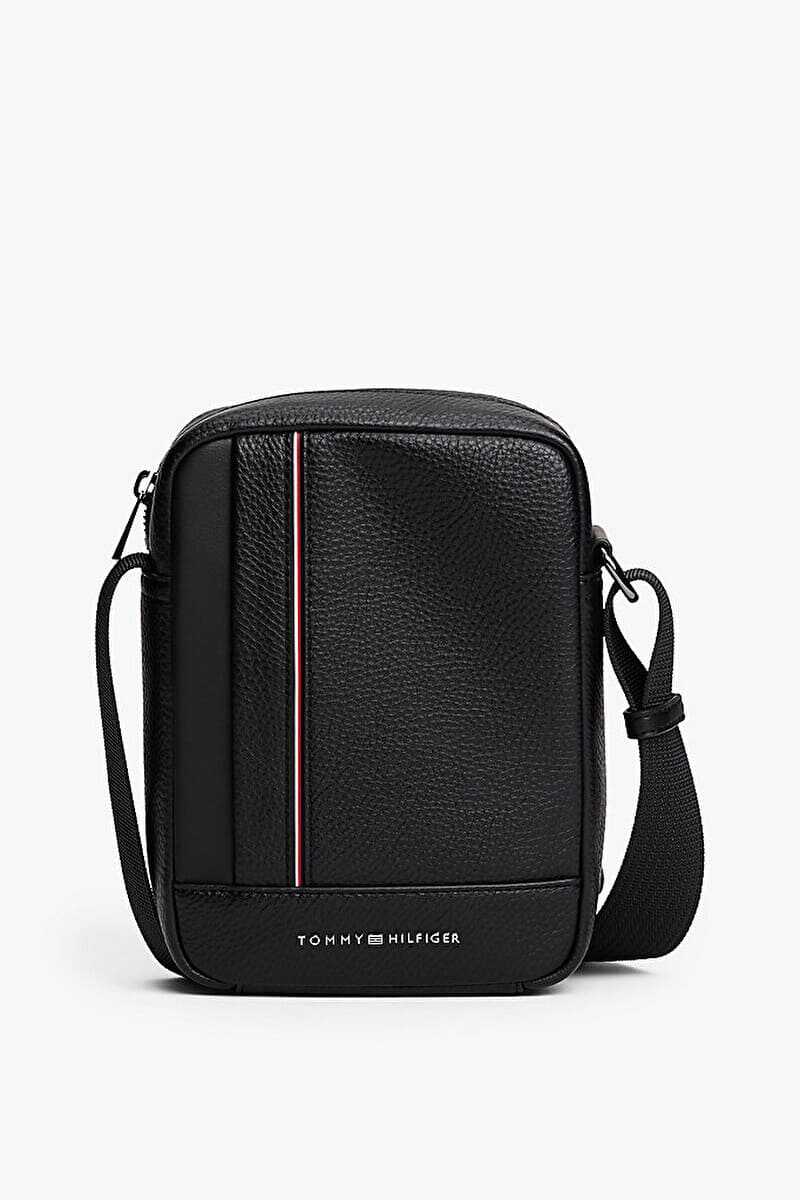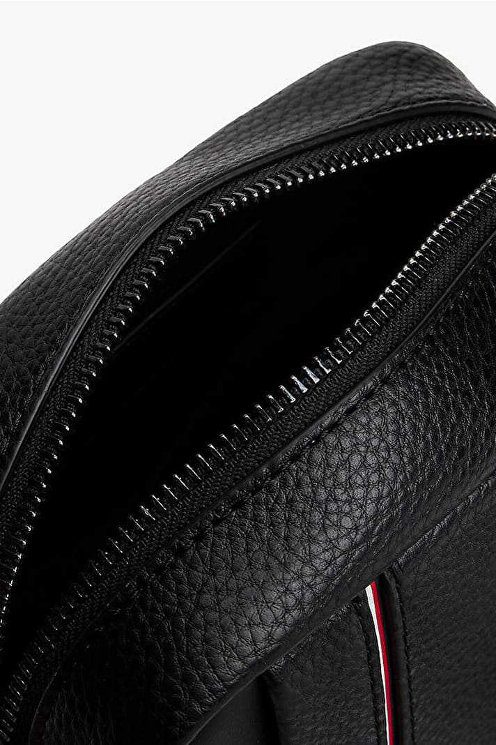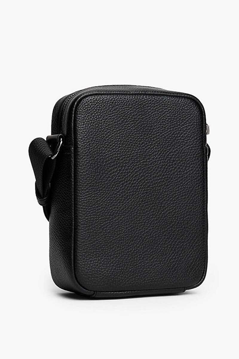 Lüks çakıl dokulu dış yüzeyi ve sade tasarımıyla bu çapraz askılı çanta, temel eşyalarınızı her zaman elinizin altında tutmanızı sağlar. Klasik siyah rengiyle her kombine uyum sağlayan model, ön yüzündeki dikey renkli şerit ve yazı logosu gibi zarif detaylarla öne çıkar. Fermuarlı ana bölmesi günlük ihtiyaçlarınız için güvenli bir saklama alanı sunarken, ayarlanabilir çapraz askısı kişiye özel konforlu bir taşıma deneyimi vadeder.
