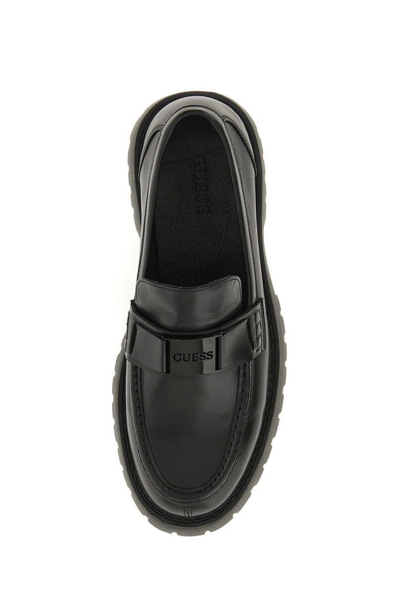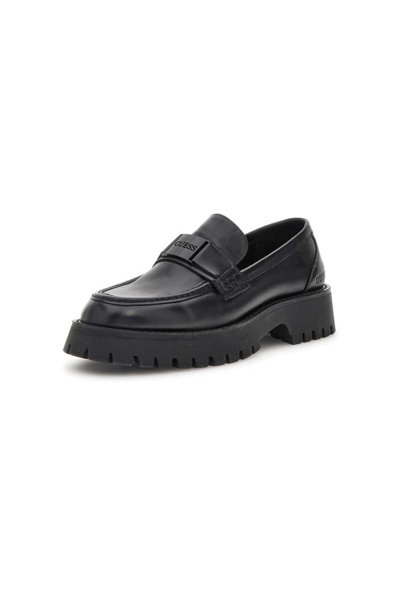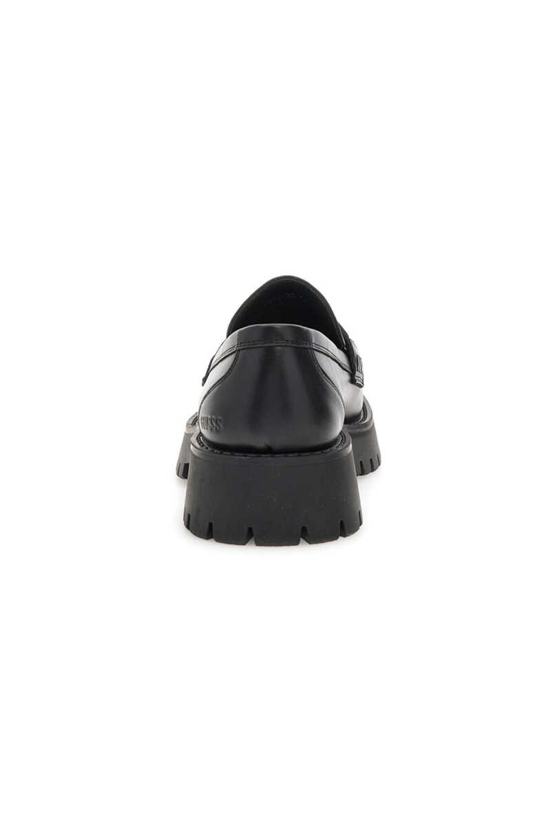 Klasik makosen tasarımına modern bir yorum getiren bu model, iddialı stiliyle öne çıkar. %100 inek derisinden üretilen pürüzsüz siyah üst kısım, modelin en dikkat çekici unsuru olan kalın ve tırtıklı traktör tabanla birleşir. Bu güçlü taban yapısı, hem güncel modayı yansıtır hem de konforlu bir kullanım sağlar. Üst kısımdaki bant üzerinde yer alan kabartma yazılı aksesuar, ayakkabının modern karakterini tamamlayan incelikli bir detaydır.