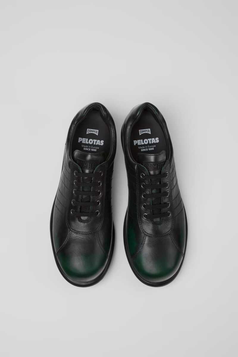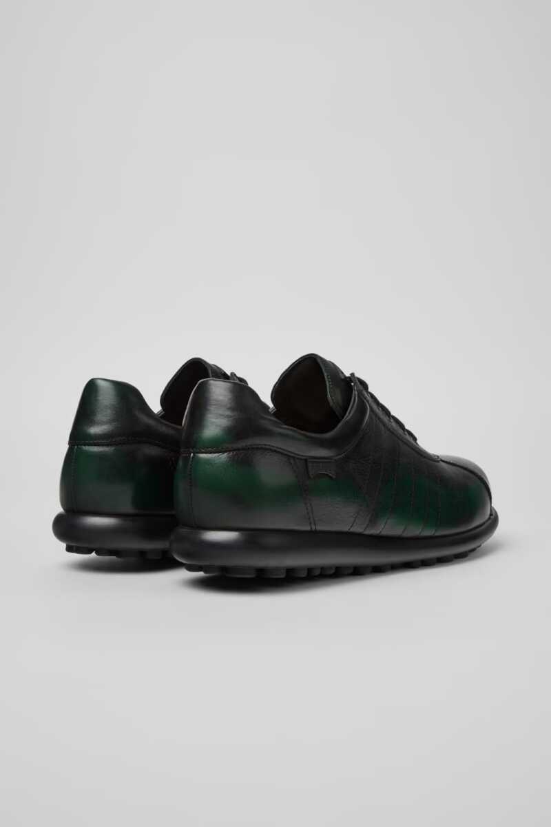 Zanaatkar bir dokunuşla öne çıkan bu ikonik sneaker, özgün ve stil sahibi bir görünüm sunar. %100 kaliteli inek derisinden üretilen üst kısmı, siyah ve yeşil arasında geçişler sunan özel fırçalanmış bir yüzeye sahiptir ve her bir çifte benzersiz bir karakter kazandırır. Büyük çoğunluğu deriden oluşan ve geri dönüştürülmüş polyester içeren astarı, gün boyu üstün konfor ve nefes alabilirlik sağlar. Yanlarındaki dikişli şerit detayları ve kendine özgü noktalı desenli dayanıklı kauçuk tabanıyla retro stilini tamamlar.