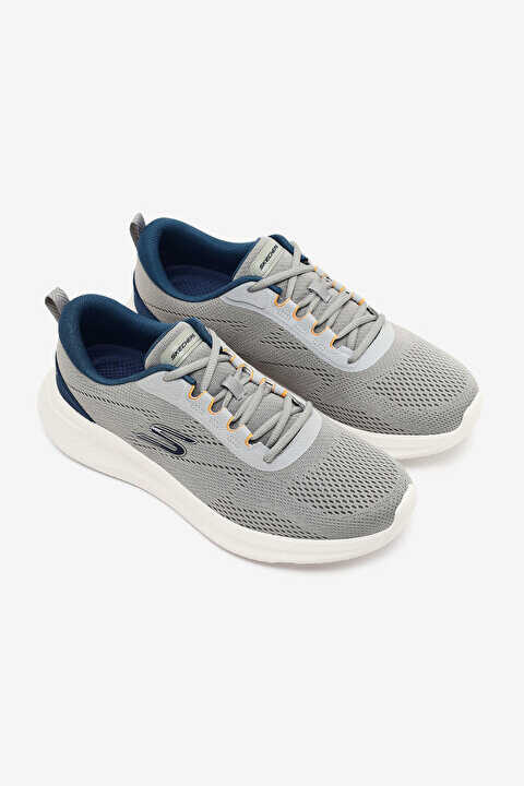 Sabah yürüyüşlerinden günlük işlerinize kadar her anınızda dinamik ve konforlu adımlar atmanızı sağlayan bu gri spor ayakkabı, modern tasarımıyla dikkat çeker. Nefes alabilen file sayası ayağınızı sararak ferahlık sunarken, Air-Cooled Memory Foam® iç taban teknolojisi ayağınızın şeklini alarak gün boyu süren bir yastıklama sağlar. Şok emici Skech-Lite orta tabanı her adımda yumuşaklık hissi verirken, esnek kauçuk dış tabanı güçlü bir zemin tutuşu vadeder. Geniş kalıbı (Wide Fit) ve makinede yıkanabilir özelliğiyle hem konforlu hem de pratik bir kullanım sunan, %100 vegan bir tasarımdır.