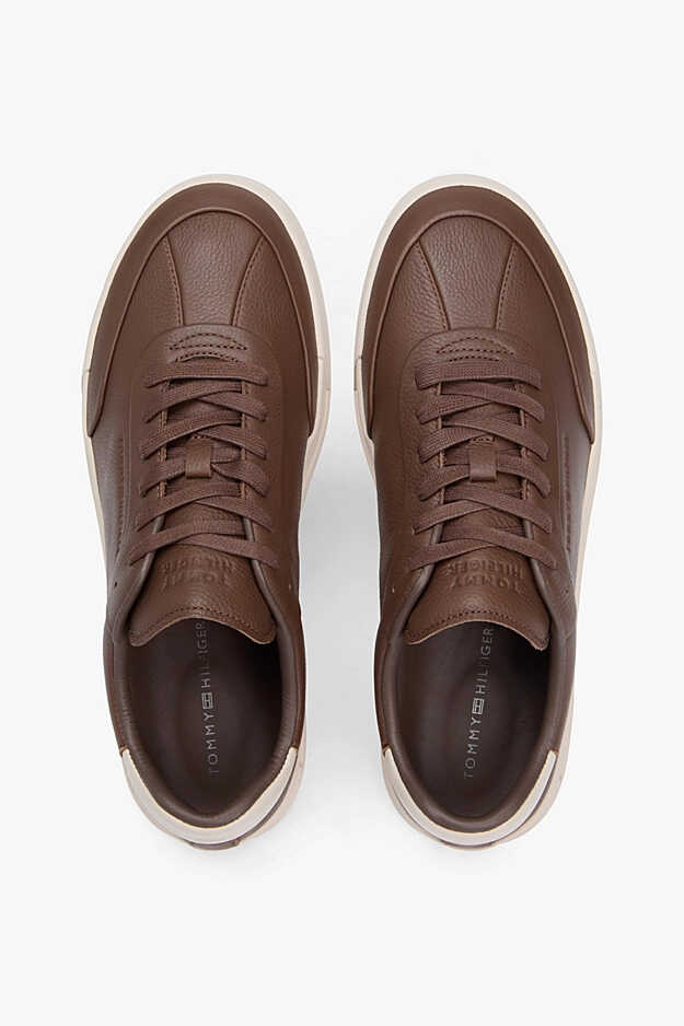 Klasik kort ayakkabısı stilini lüks detaylarla bir üst seviyeye taşıyan bu spor ayakkabı, zengin ve sofistike renk tonuyla dikkat çekiyor. %100 sığır kabartma deri üst yüzeyi, ürüne derinlikli bir doku ve premium bir hissiyat kazandırır. Kahverenginin asaletini, kontrast oluşturan kırık beyaz kalın taban yapısı ve topuk detayı ile dengeleyerek modern bir silüet sunar. Yan kısımda yer alan zarif logo işlemesi ve dayanıklı yapısıyla hem ofis şıklığında hem de hafta sonu gezmelerinde stil sahibi erkeklerin tercihi olmaya adaydır.