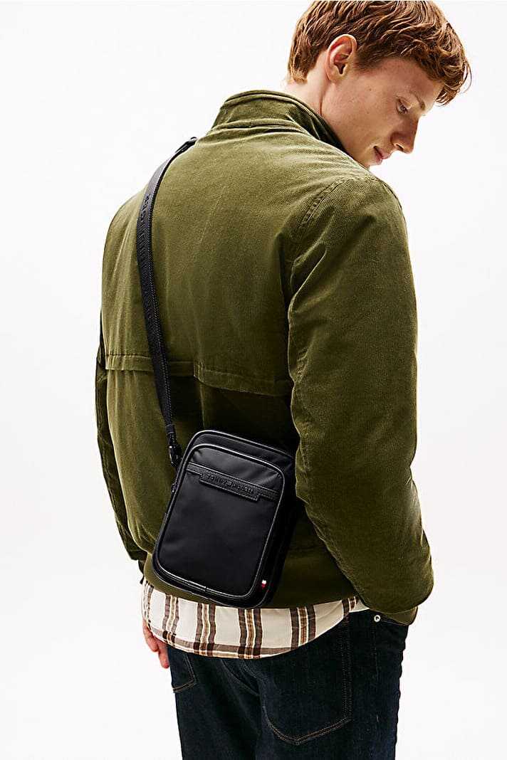 Günlük temel ihtiyaçlarınızı stil sahibi bir şekilde yanınızda taşımak için tasarlanan bu kompakt mini postacı çantası, pürüzsüz polyester yüzeyi ile modern bir görünüm sunar. Ayarlanabilir çapraz askısı, askı boyunca tekrar eden tonal logo detaylarıyla zenginleştirilmiştir ve kişisel uyum sağlar. Fermuarlı ana bölmesi, iç slip cebi ve kullanışlı dış fermuarlı cebi ile eşyalarınızı organize eder. Ön tarafta yer alan metal plaka üzerindeki yazı detayı, tasarıma rafine bir imza atar.