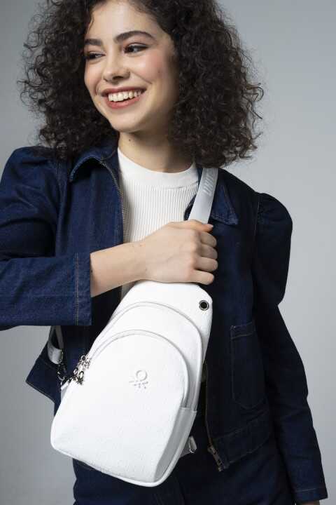 Gofraj Baskılı Çapraz Body Çanta-BNT_614-Beyaz-A.Gri