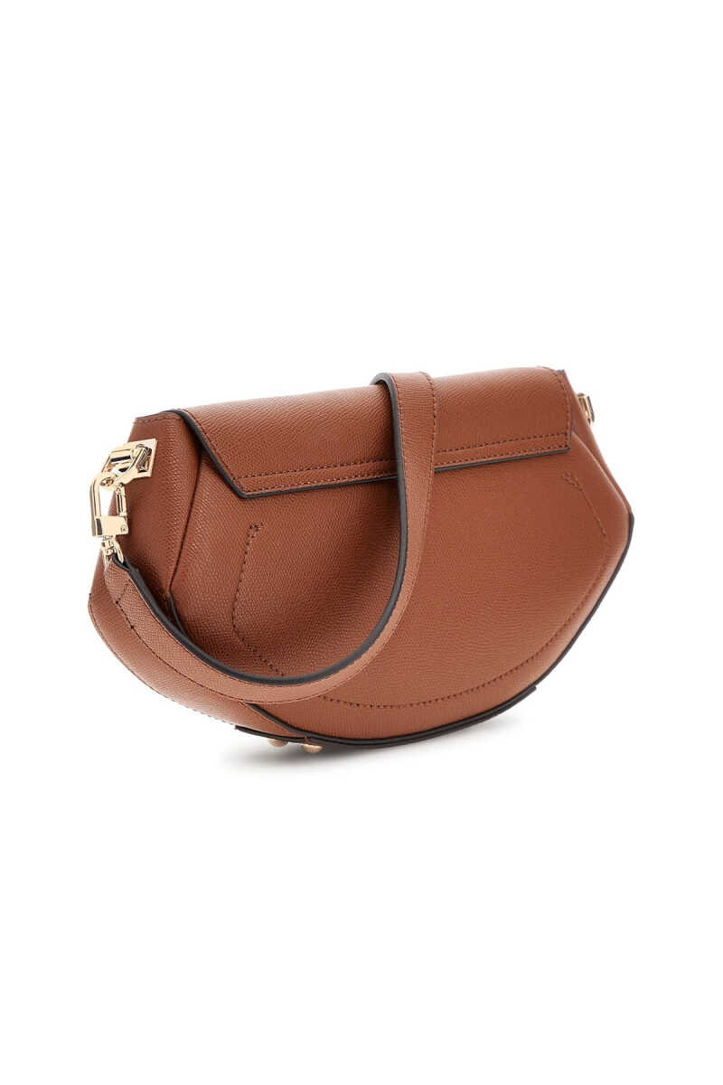 Minimalist ve modern bir tasarıma sahip bu omuz çantası, akıcı yarım ay formuyla öne çıkar. Dokulu poliüretan yüzeyi ve asimetrik kapak detayı, çantaya özgün ve sofistike bir karakter kazandırır. Ön kapak üzerindeki metal yazı detayı, çantanın sade şıklığını vurgular. Ayarlanabilir omuz askısı, kişiselleştirilmiş ve konforlu bir kullanım sunar.