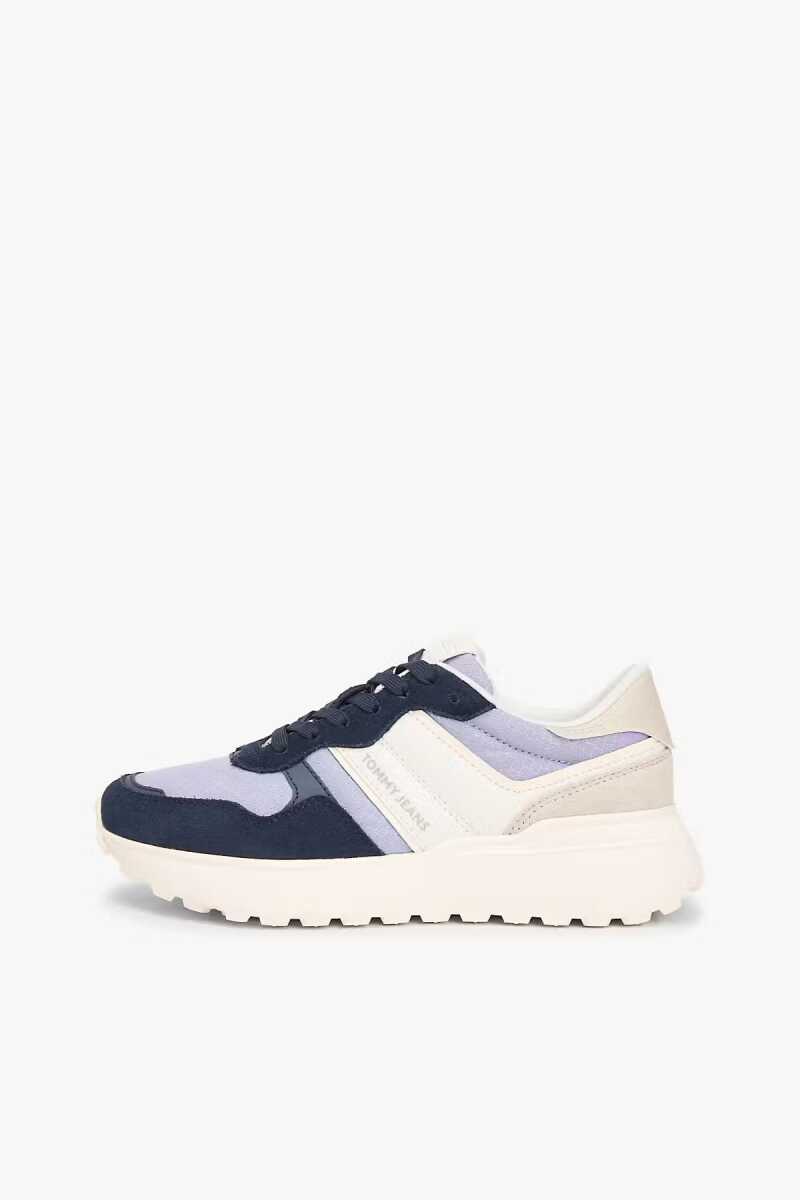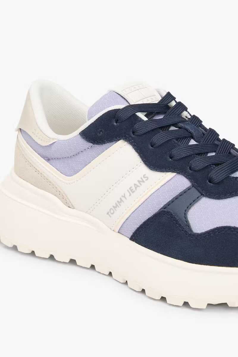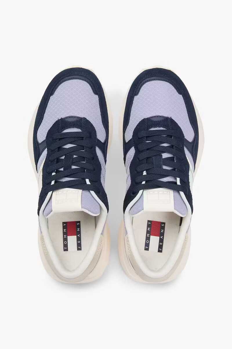 Retro koşu stili estetiğini modern ve hacimli hatlarla buluşturan bu spor ayakkabı, lacivert renginin derinliğini açık lila tonlarıyla harmanlayarak dinamik bir görünüm sunar. Tasarımın imza niteliğindeki kalın ve dişli taban yapısı, hem zemine güçlü bir tutuş sağlar hem de sokak stiline iddialı bir dokunuş katar. Yan panellerdeki doku oyunları ve marka şeridi detayı sportif şıklığı vurgularken, bağcıklı kapama sistemi ayağı güvenle sarar. %100 geri dönüştürülmüş materyal kullanımıyla sürdürülebilir modayı destekleyen bu parça, gün boyu konfor ve stili bir arada arayanlar için idealdir.