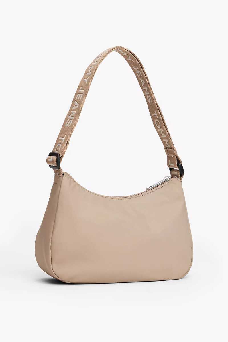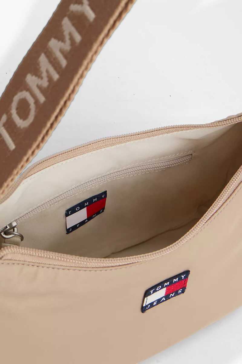 Vintage trendlerden ilham alan bu şık ve minimalist baget çanta, günlük kullanım için idealdir. Hafif ve dayanıklı polyester malzemeden üretilen çanta, omuzda rahatça taşınabilen kompakt bir tasarıma sahiptir. Çok yönlü bej rengi, her kombine kolayca uyum sağlar. Fermuarlı ana bölmesi temel eşyalarınız için güvenli bir saklama alanı sunarken, ayarlanabilir omuz askısı kişiye özel bir uyum sağlar. Ön yüzündeki küçük dokuma amblem, sade tasarıma karakteristik bir dokunuş katar.