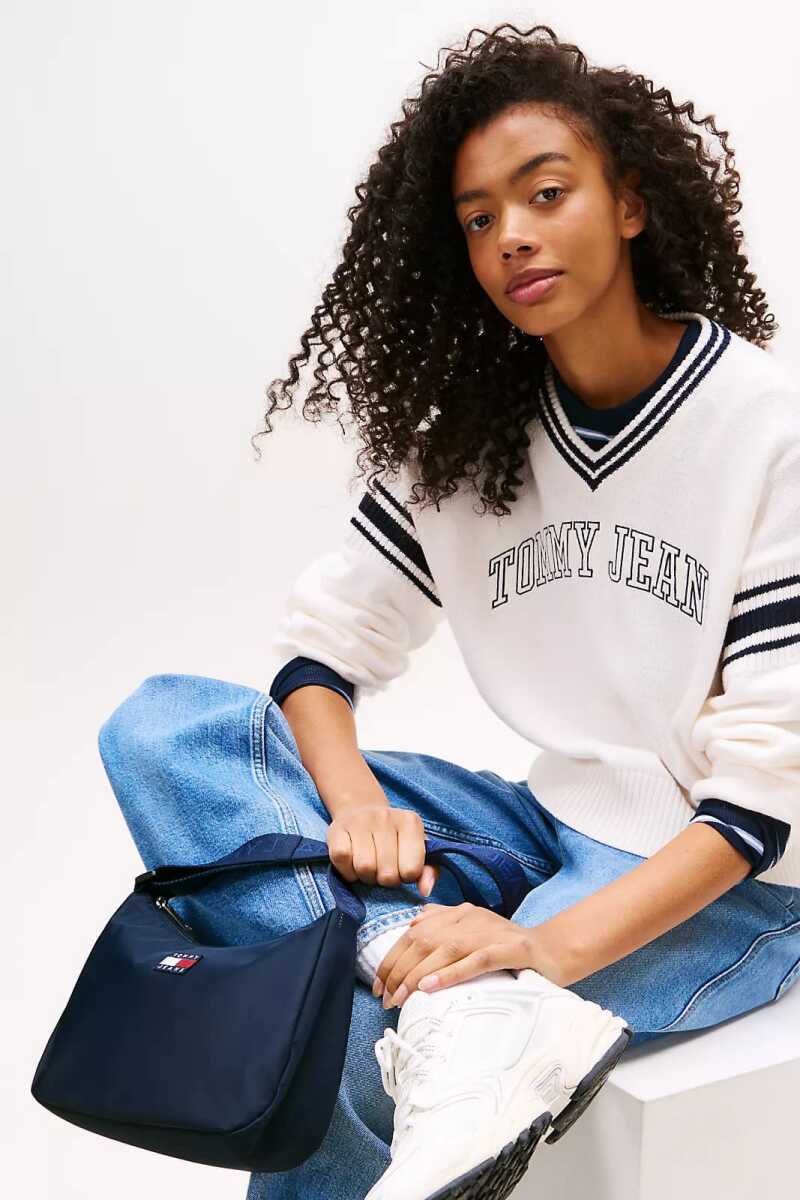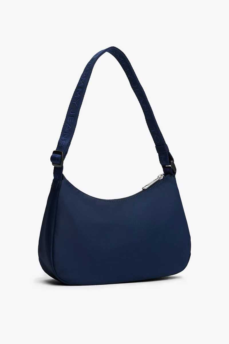 Trendleri yakalayan vintage esintili silüeti, klasik ve çok yönlü bir renkle birleştiren bu baget çanta, her gardırop için idealdir. Hafif ve dayanıklı polyester malzemeden üretilen çanta, omuzda rahatça taşınabilen kompakt bir tasarıma sahiptir. Zamansız lacivert rengi, her kombine kolayca uyum sağlar. Fermuarlı ana bölmesi temel eşyalarınız için güvenli bir saklama alanı sunarken, ayarlanabilir omuz askısı kişiye özel bir uyum sağlar. Ön yüzündeki küçük dokuma amblem, sade tasarıma karakteristik bir dokunuş katar.