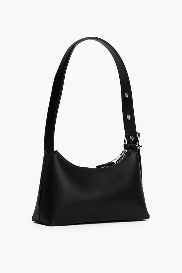 Her gardırobun olmazsa olmazı olan bu şık ve zamansız baget çanta, 90'ların minimalist ruhunu yansıtıyor. Pürüzsüz poliüretan malzemeden üretilen çanta, her kombine uyum sağlayan klasik siyah rengiyle öne çıkar. Omuza tam oturan zarif ve kompakt bir silüete sahiptir. Fermuarlı ana bölmesi temel eşyalarınız için güvenli bir saklama alanı sunarken, ayarlanabilir omuz askısı kişiye özel bir uyum sağlar. Ön yüzündeki küçük metal amblem plakası, tasarıma rafine bir son dokunuş yapar.