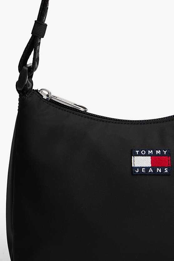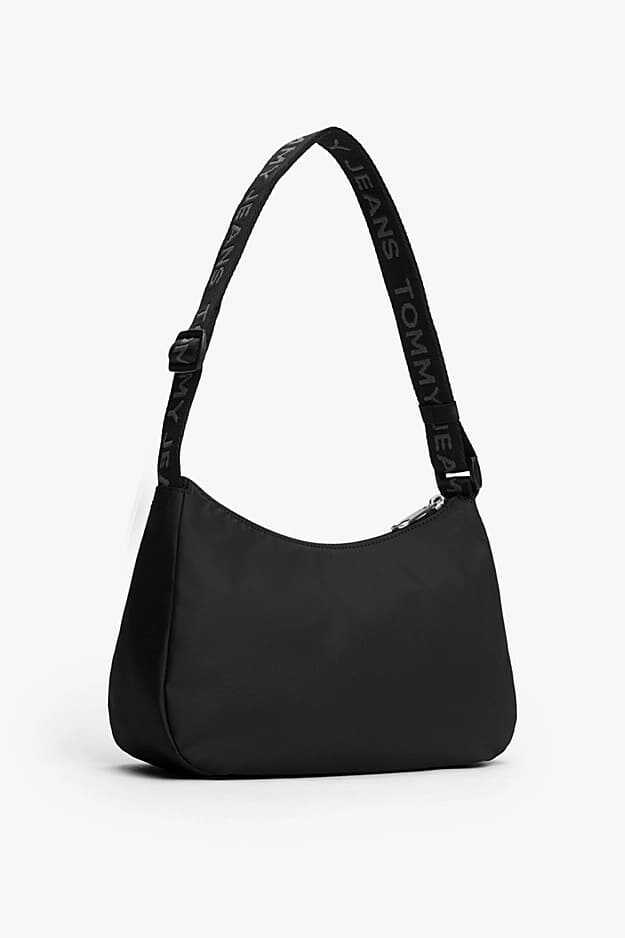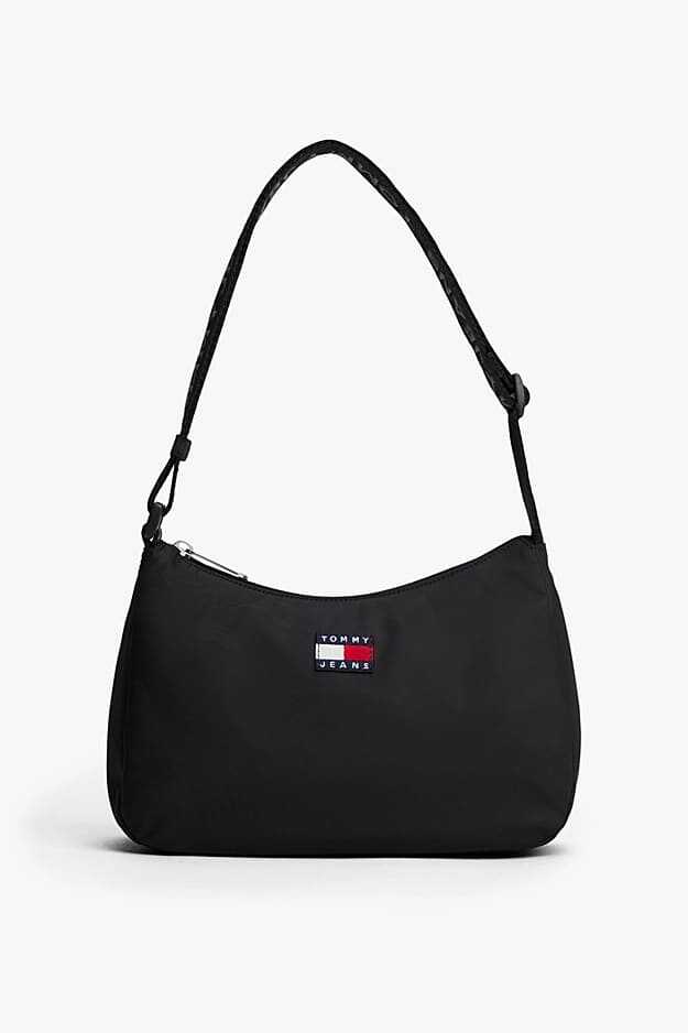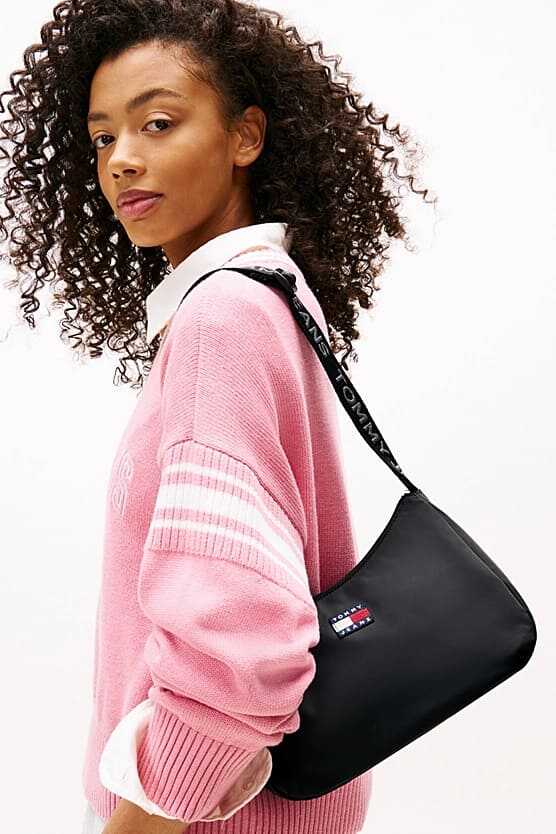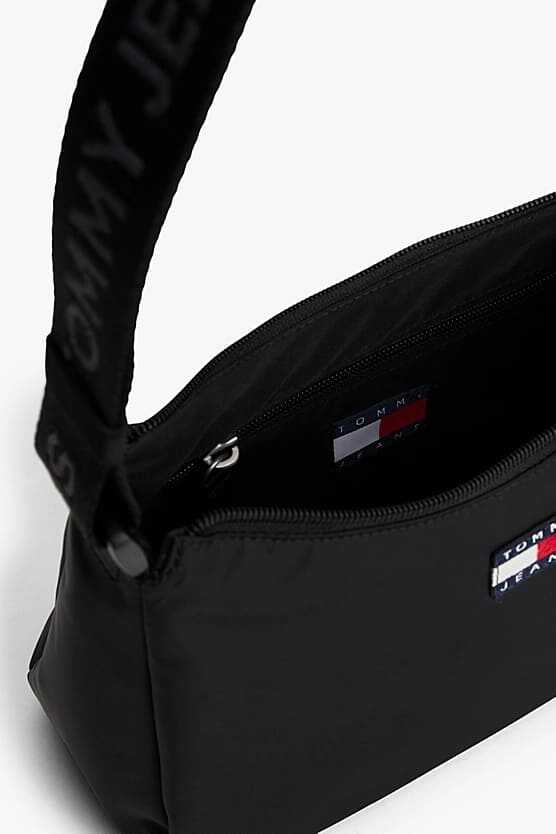 Her gardırobun temel ihtiyacı olan bu çok yönlü omuz çantası, minimalist tasarımı imza detaylarla birleştiriyor. Hafif ve dayanıklı polyester malzemeden üretilen çanta, klasik siyah rengiyle her kombine zahmetsizce uyum sağlar. Fermuarlı ana bölmesi ve değerli küçük eşyalarınız için tasarlanmış fermuarlı iç cebi ile pratik bir kullanım sunar. Üzeri yazılı ayarlanabilir dokuma askısı ve ön yüzdeki dokuma amblem, çantanın karakteristik stilini tamamlar.