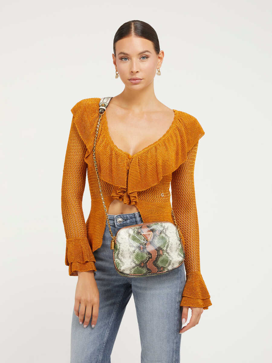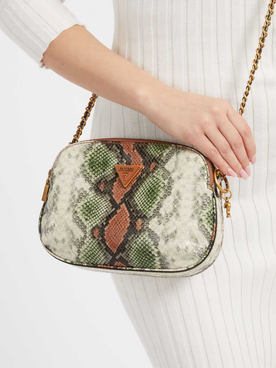 Kadın Becci Piton Desenli Mini Çapraz Çanta-Yeşil
