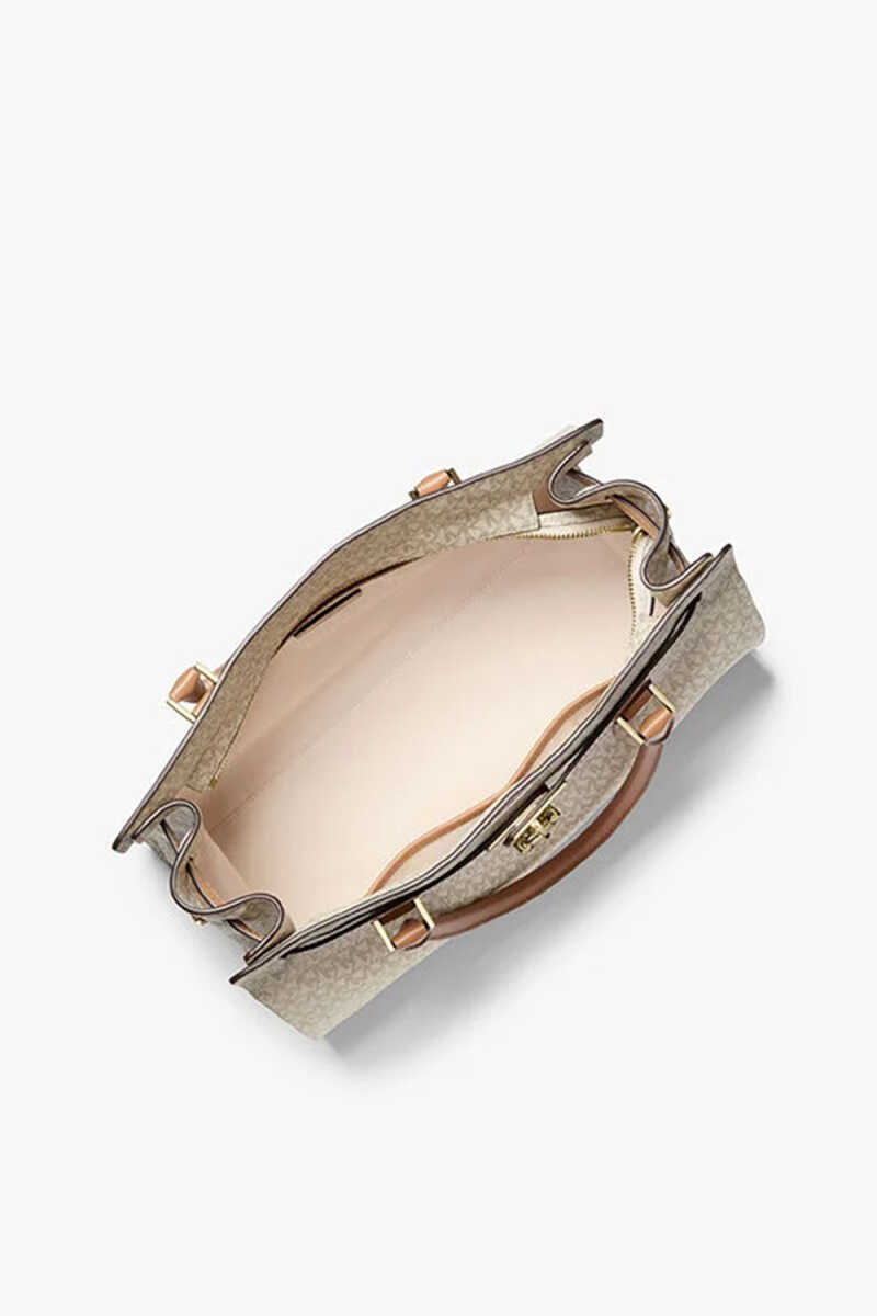 Günlük şıklığınızı bir üst seviyeye taşıyan bu Borsa a Mano (Elde taşınan) çanta, ikonik monogram deseniyle dikkat çeker. %100 Poliüretan malzemesi sayesinde dayanıklı ve kaliteli bir duruş sergiler. Üst kısmında yer alan toka görünümlü metal kilit detayı, çantaya sofistike bir hava katar. Geniş iç hacmi ve fermuarlı/bölmeli iç yapısıyla tüm kişisel eşyalarınızı düzenli bir şekilde taşımanızı sağlar. Elde ve ayarlanabilir uzun Askı Boyu sayesinde omuzda veya çapraz olarak taşınabilir.
