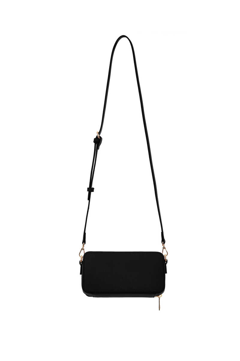 Just Cavalli'nin bu kompakt çapraz askılı çantası, modern ve minimalist bir stil sunar. Siyah poliüretan yüzey üzerinde yer alan parlak altın rengi Just Cavalli logosu, tasarıma lüks bir imza katıyor. Ayarlanabilir askısı sayesinde omuzda veya çapraz olarak rahatça kullanılabilen bu çanta, fermuarlı kapaması ile günlük temel eşyalarınız için güvenli bir alan sağlar.