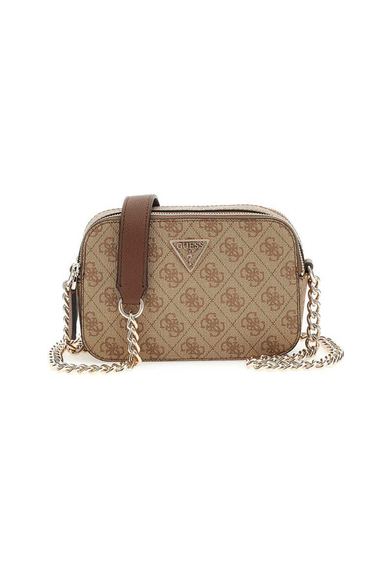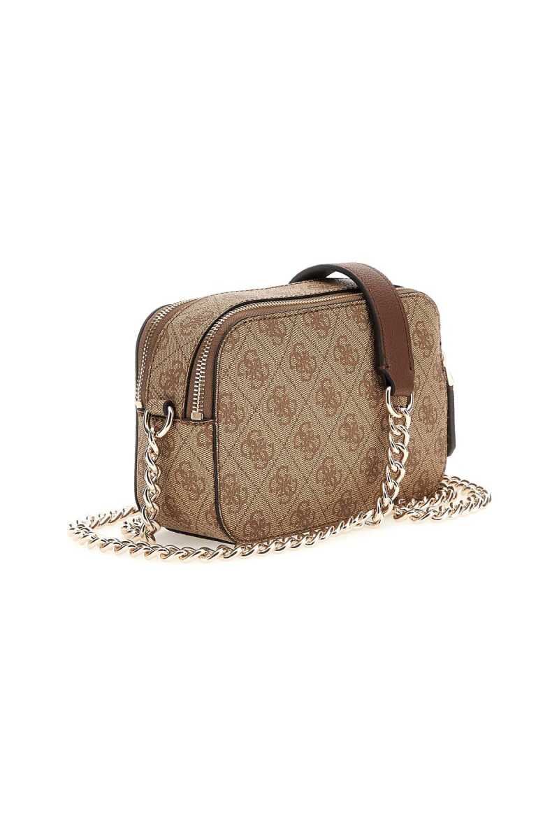 Hem şık hem de son derece fonksiyonel olan bu çapraz askılı çanta, popüler "kamera çantası" silüetine sahiptir. Monogram desenli yüzeyi, çantaya klasik bir kimlik kazandırır. İki ayrı fermuarlı ana bölmesi sayesinde eşyalarınızı düzenli ve güvenli bir şekilde saklama imkanı sunar. Ön yüzeydeki üçgen formlu metal logo ve zincir detaylı omuz askısı, çantanın modern tasarımını tamamlar.
