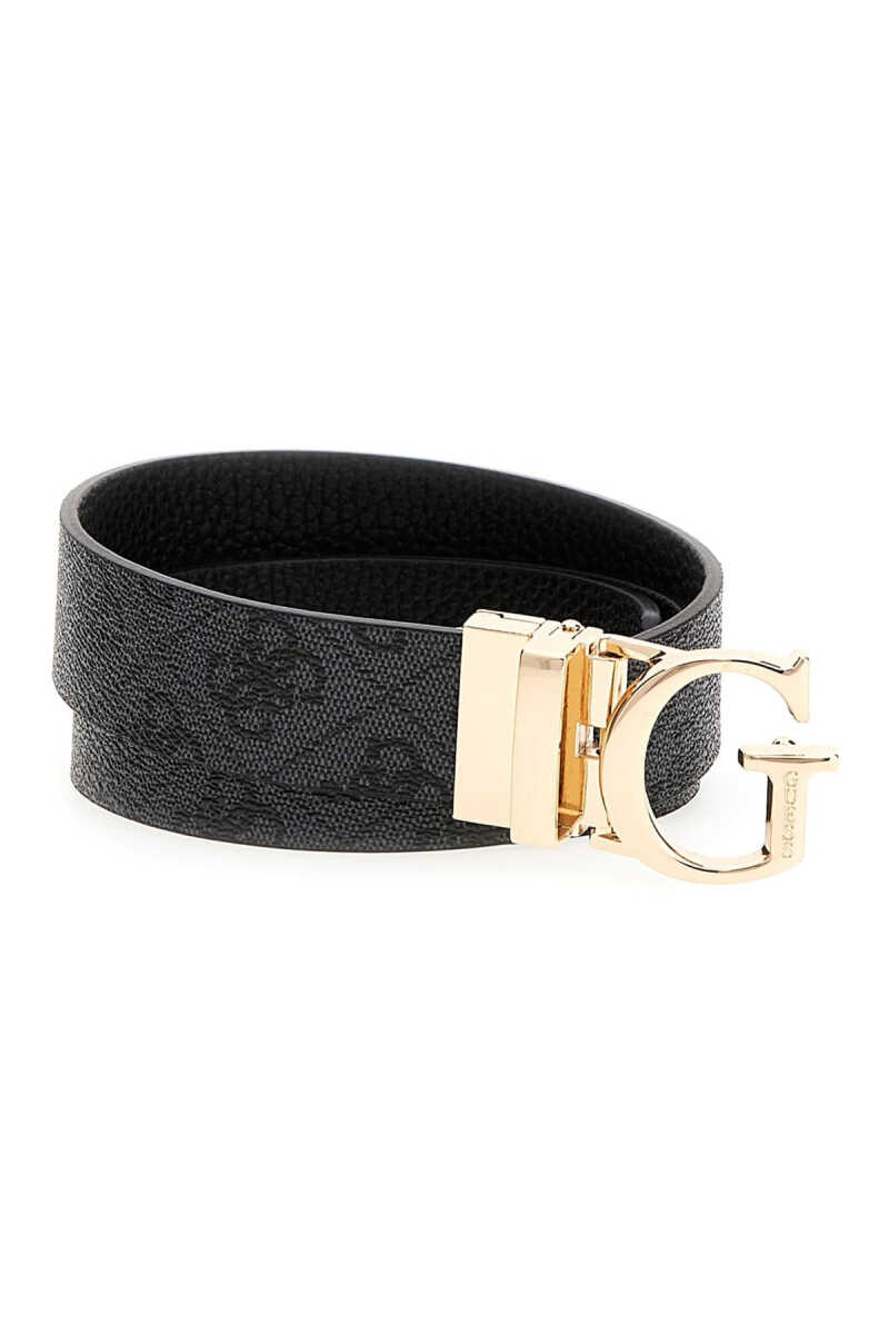 Fonksiyonelliği ve göz alıcı tasarımı bir araya getiren bu kemer, gardırobunuza çok yönlülük katmak için idealdir. Çift taraflı olarak tasarlanan modelin bir yüzü antrasit zemin üzerine monogram deseniyle, diğer yüzü ise sade ve dokulu siyah rengiyle öne çıkar. Parlak altın rengi metalden oluşan büyük harf formundaki döner tokası sayesinde iki stil arasında saniyeler içinde geçiş yapabilirsiniz. Bu kemer, tek bir aksesuarla iki farklı görünüm elde etme imkanı sunar.