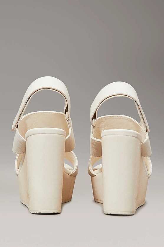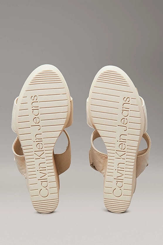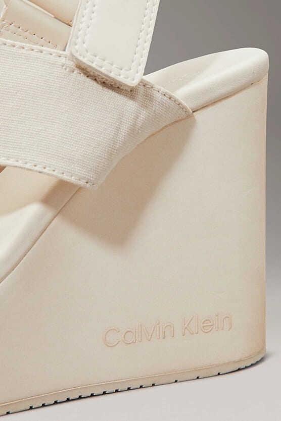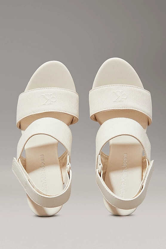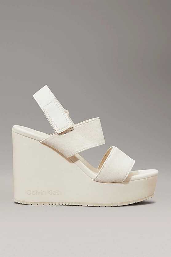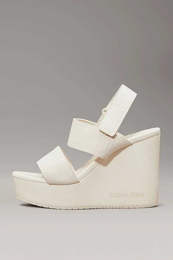 Kadın Ck Canvas Platform Topuk Sandalet - Ekru