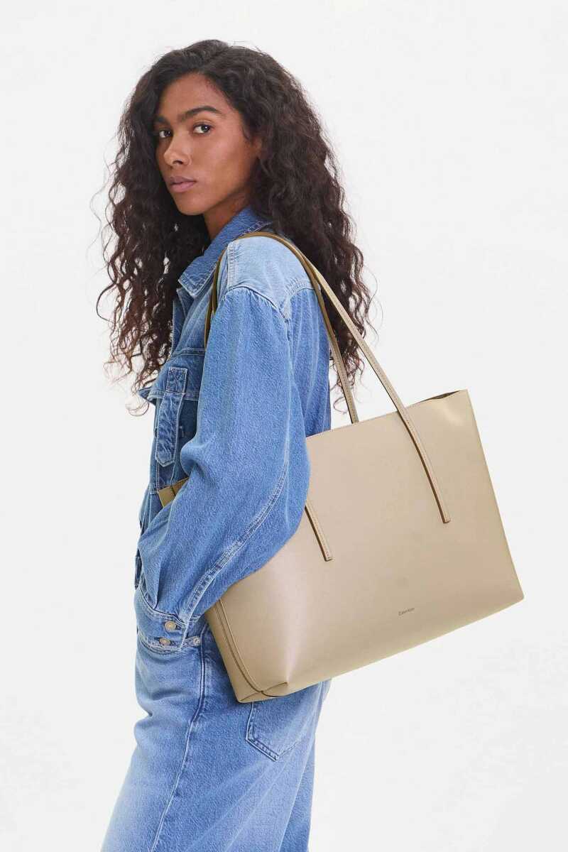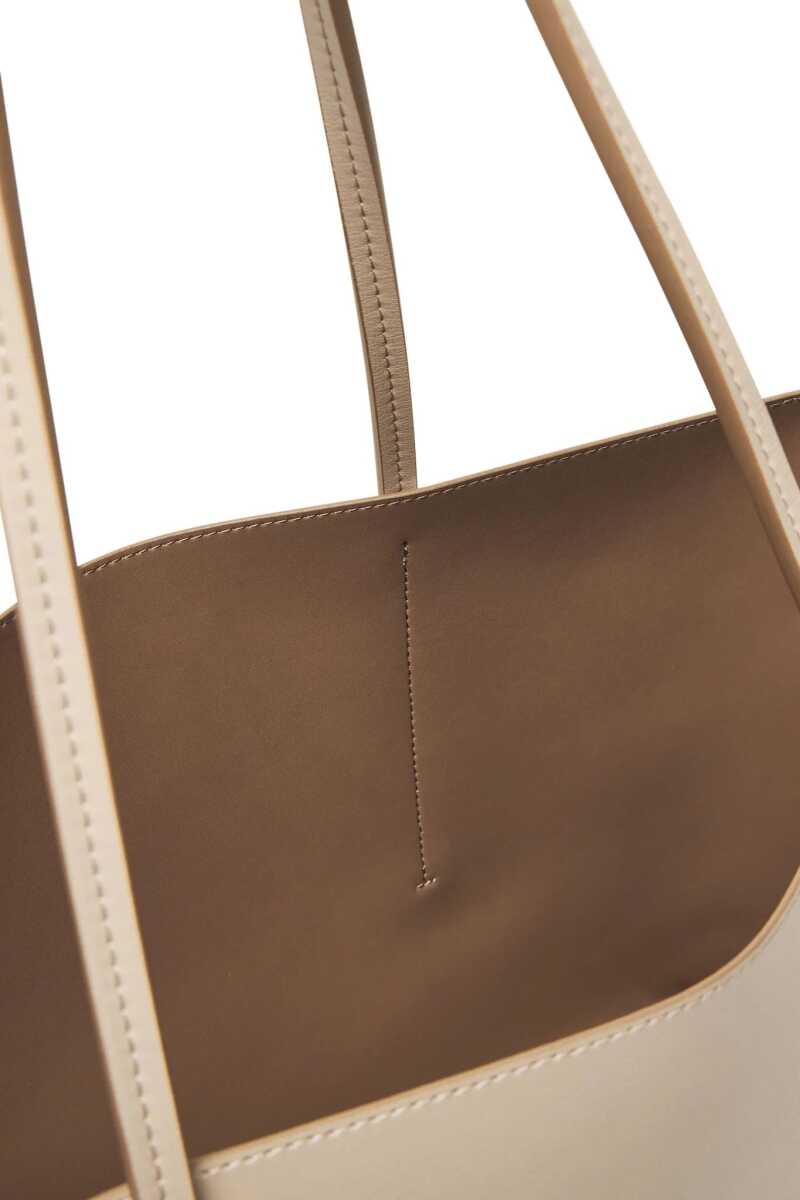 Zarif, minimalist ve son derece kullanışlı olan bu tote çanta, günlük stilinize sofistike bir dokunuş katmak için tasarlanmıştır. Kaliteli ve dayanıklı poliüretan malzemesi, pürüzsüz bir dokuyla şık bir görünüm sunar. 46 cm genişlik, 28 cm yükseklik ve 14 cm derinlik ölçülerindeki geniş iç hacmi, tüm günlük eşyalarınız için bolca alan sağlar. Ayrıca, küçük eşyalarınızı düzenlemek veya tek başına bir portföy olarak kullanmak için ideal olan, üzerinde minimalist metalik bir logo bulunan fermuarlı bir iç cüzdan ile birlikte gelir.