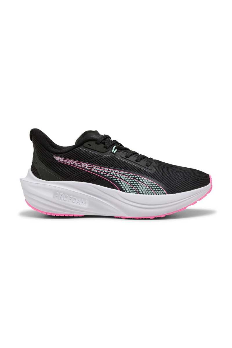 Koşu performansınızı bir üst seviyeye taşıyacak Darter Pro ile tanışın. Siyah file üst yüzeyi sayesinde ayaklarınızın nefes almasını sağlarken, hafif ve hızlı tepki veren Profoam orta tabanı her adımda üstün yastıklama ve enerji geri dönüşü sunar. Yan kısımdaki canlı pembe ve mint yeşili tonlarındaki logo detayı ve tabandaki renk vurguları, tasarıma dinamik ve enerjik bir dokunuş katıyor. Hem antrenmanlarınızda hem de günlük koşularınızda konforu ve stili bir arada arayanlar için ideal bir seçimdir.