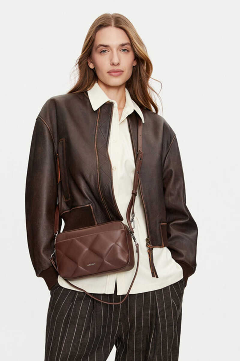 Kadın DIAMOND QUILT CAMERA BAG Omuz Oyunu - Kahverengi