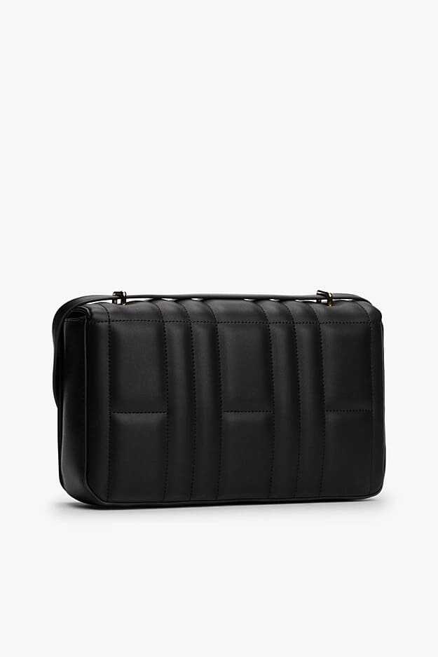 Zarif ve sade görünümüyle günlük ve özel gün kombinlerine kolayca uyum sağlayan bu kapitone omuz çantası, altın renkli TH logosu ve şık tasarımıyla stilinizi tamamlar.