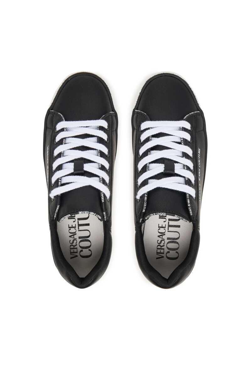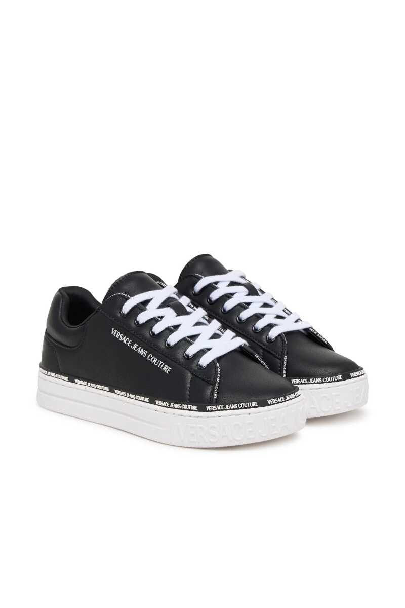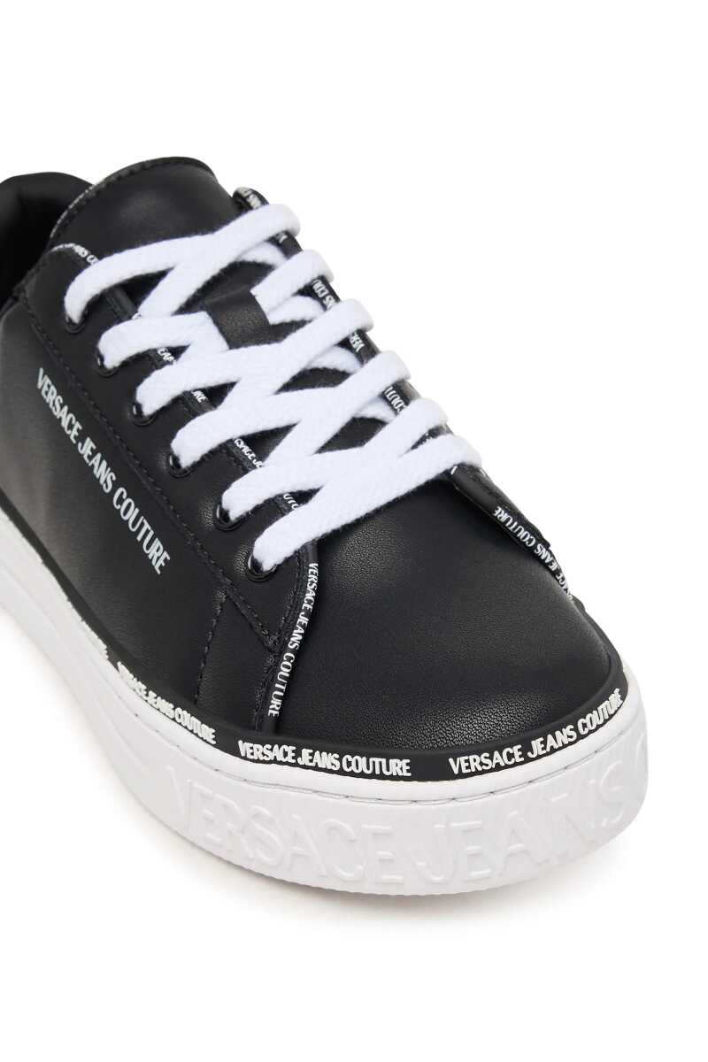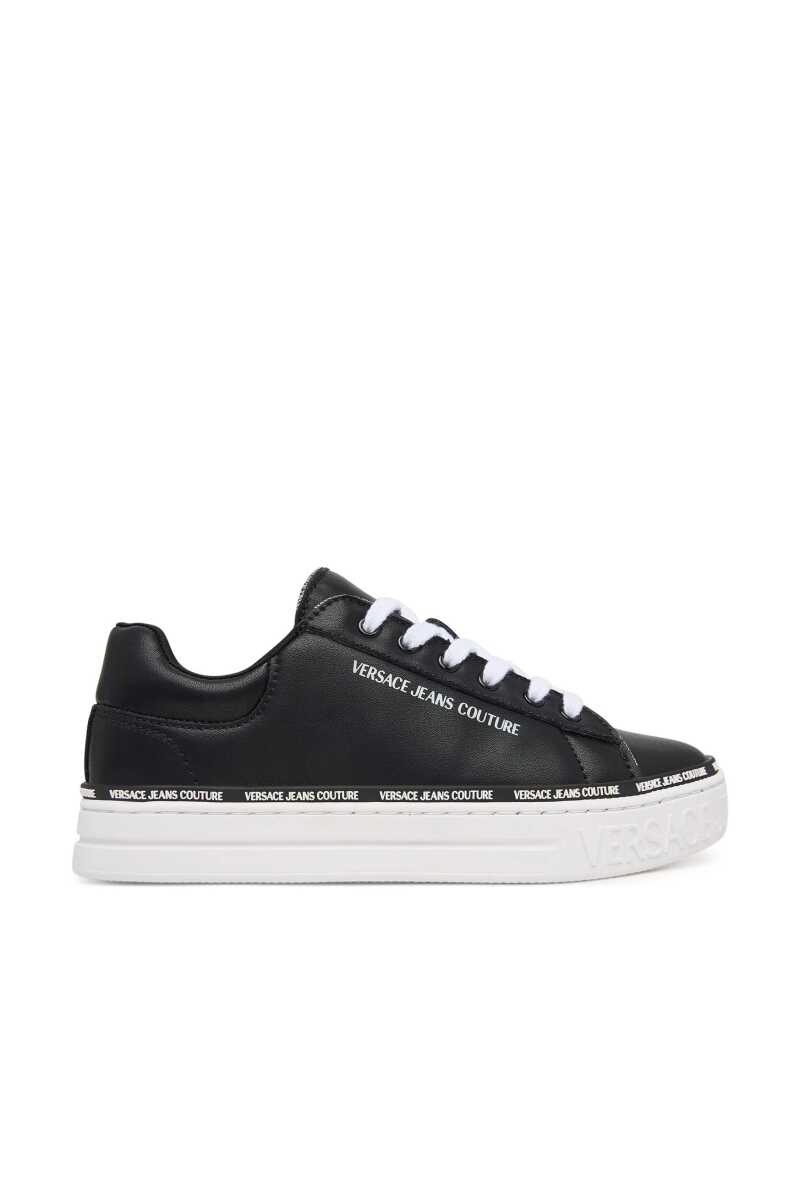 Klasik kort ayakkabısı stilini modern logo detaylarıyla birleştiren bu sneaker, günlük şıklığınıza dinamik bir dokunuş katacak. Pürüzsüz siyah deri yüzeyi, taban kenarını ve üst birleşim yerini çevreleyen kontrast beyaz yazı logolu şeridiyle dikkat çekici bir görünüm sunar. Beyaz kauçuk tabanı konforlu adımlar sağlarken, tasarıma temiz ve sportif bir bitiş katar. Dil ve topuk kısmındaki ek logo detaylarıyla zenginleştirilen bu bağcıklı sneaker, jean pantolonlardan eteklere kadar her türlü kombininize zahmetsizce uyum sağlayarak stilinizi tamamlayacak.