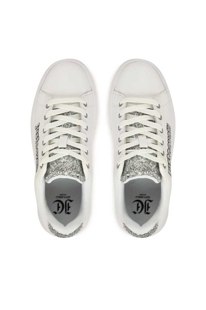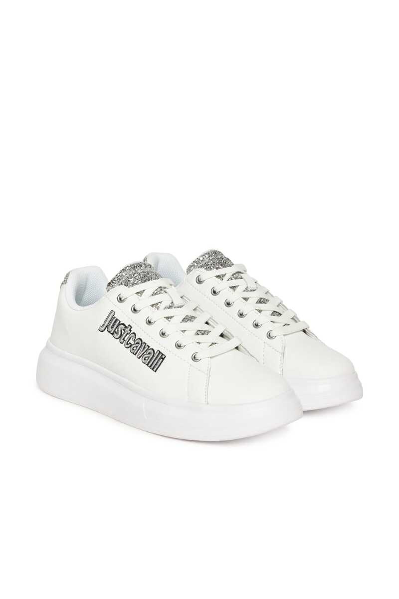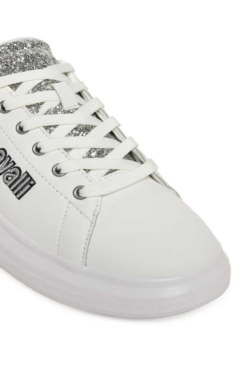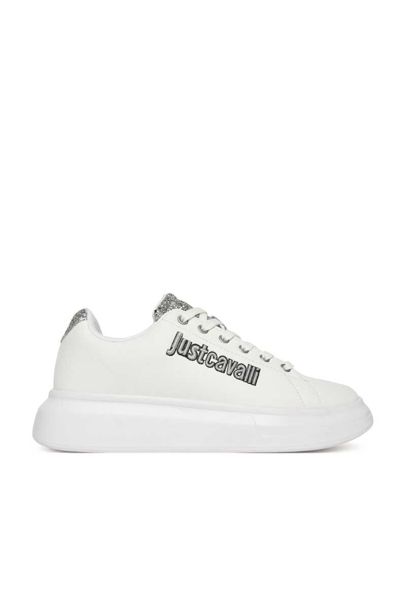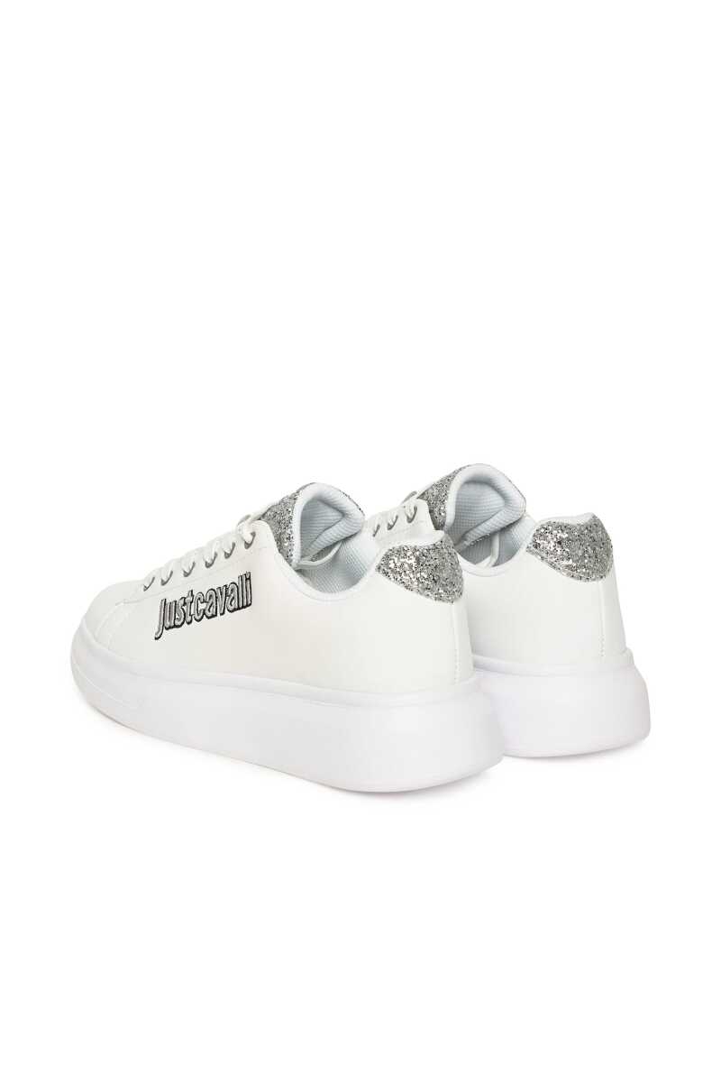 Günlük stilinize ışıltı ve modern bir dokunuş katacak bu beyaz sneaker ile tanışın. Klasik sneaker silüetini, dil ve topuk kısmındaki göz alıcı gümüş simli detaylarla zenginleştiren bu ayakkabı, adımlarınıza parıltı katacak. Yan kısmındaki siyah ve gri nakışlı yazı logosu tasarıma cesur bir imza atarken, kalın beyaz Phylon tabanı hem güncel bir görünüm sunar hem de gün boyu üstün konfor sağlar. Deri ve poliüretan karışımı malzemesiyle dayanıklılık vadeden bu sneaker'ı, jean pantolonlardan elbiselere kadar her türlü kombininizle eşleştirerek zahmetsiz bir şıklık yakalayın.
