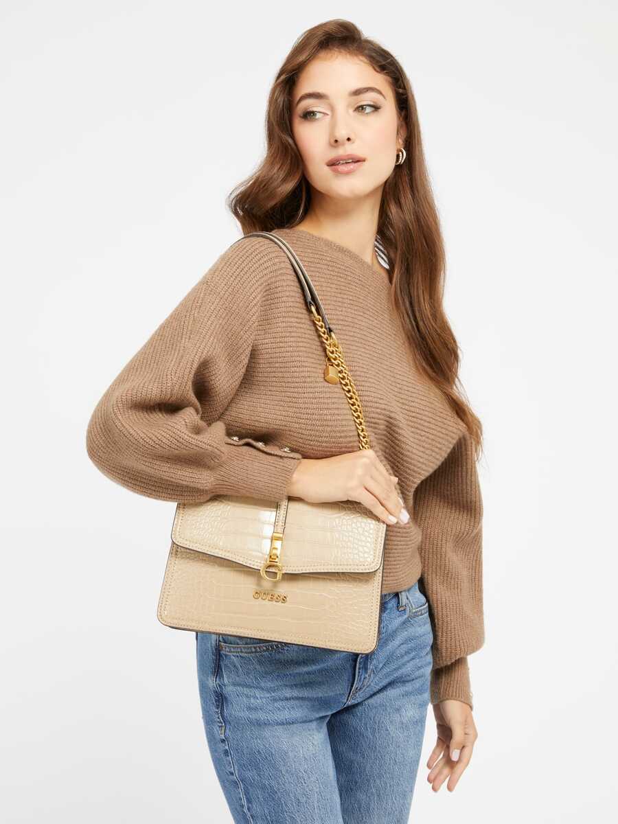 Kadın G James Timsah Desenli Çapraz Çanta-Bej