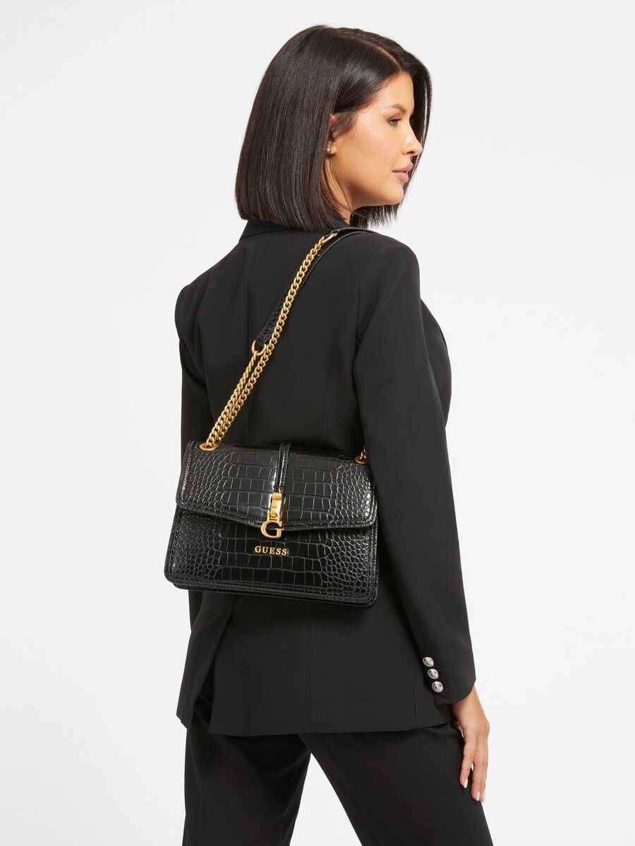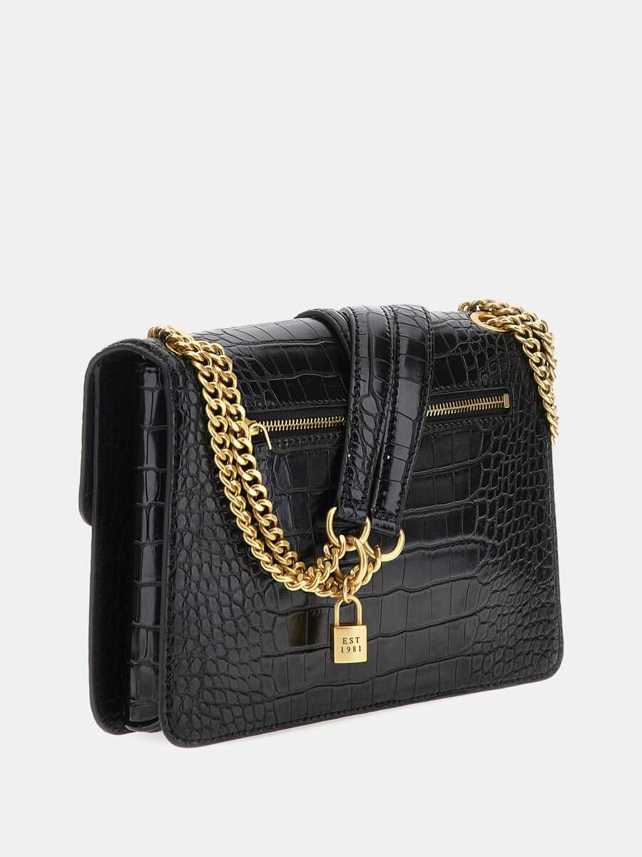 Kadın G James Timsah Desenli Çapraz Çanta-Siyah