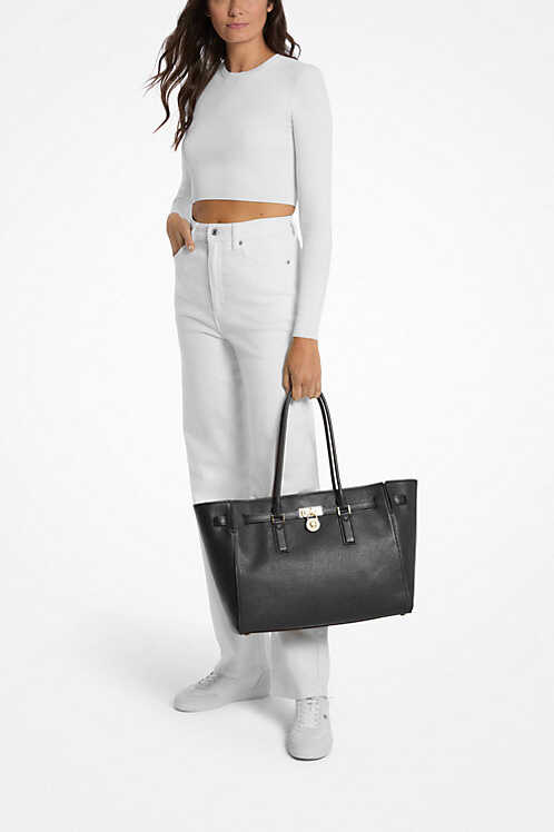 Siyahın zamansız şıklığını altın rengi metal detaylarla birleştiren Hamilton Moderne, klasik tote çanta tasarımına modern ve asil bir dokunuş katıyor. Poliüretan malzemeden üretilen dayanıklı yapısı ve düz deri görünümlü dokusuyla kaliteli bir duruş sergiler. 38 cm genişliğindeki hacmi sayesinde günlük ihtiyaçlarınızı ve ofis gereçlerinizi rahatça taşıyabilir, ideal askı boyu ile omzunuzda konforla kullanabilirsiniz. Ön kısmındaki imza niteliğindeki kilit aksesuarı ile stilinizi tamamlayan zarif bir parçadır.