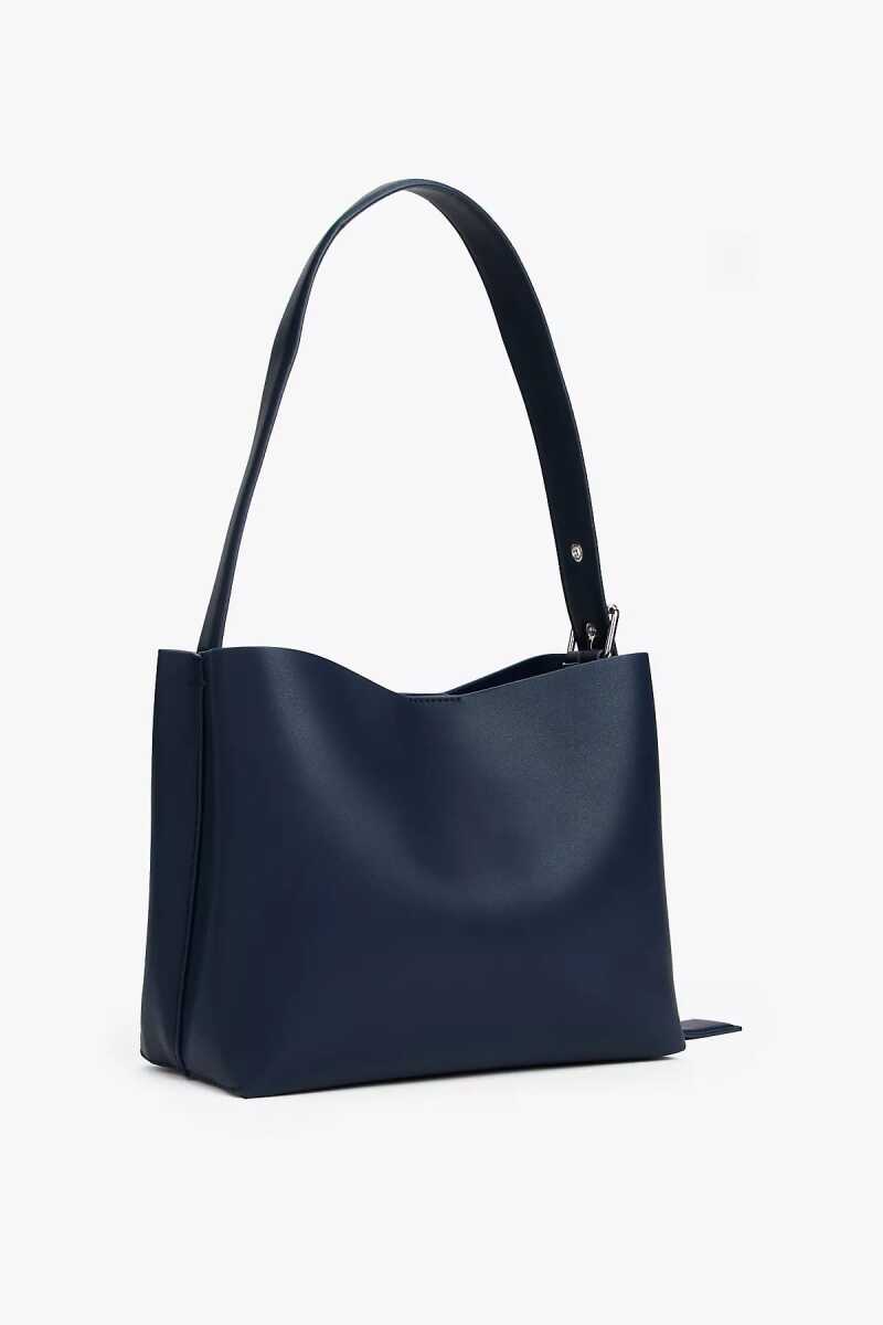 Hem şık hem de pratik olan bu modern hobo çanta, rahat ve akıcı silüetiyle öne çıkıyor. Pürüzsüz poliüretan malzemeden üretilen çanta, zamansız lacivert rengiyle her kombine kolayca uyum sağlar. Günlük tüm temel eşyalarınızı alabilecek geniş bir iç hacim sunar. Ayarlanabilir omuz askısı kişiye özel konforlu bir uyum sağlarken, alt köşesindeki küçük metal amblem plakası tasarıma zarif bir imza atar.
