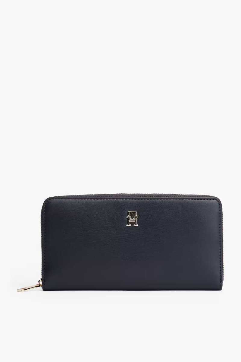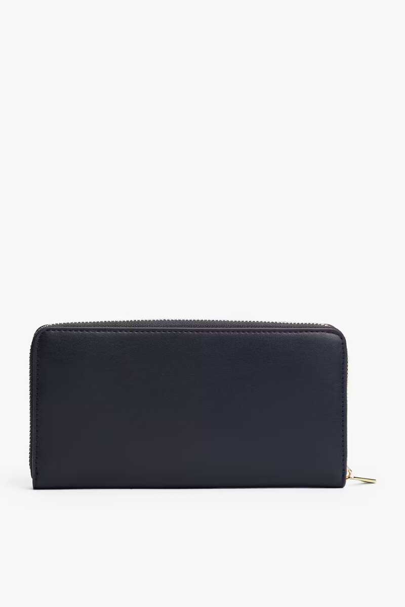 Sade şıklığı ve fonksiyonelliği bir arada sunan bu cüzdan, stil sahibi kadınların vazgeçilmezi olmaya aday. Pürüzsüz yüzeyi ve ön kısmında yer alan parlak metalik logo detayı ile sofistike bir görünüm sergiler. Çepeçevre fermuarlı kapanışı, eşyalarınız için üst düzey güvenlik sağlarken; kartlıklar, kağıt para bölmeleri ve fermuarlı bozuk para gözünden oluşan geniş iç hacmi mükemmel bir organizasyon sunar.