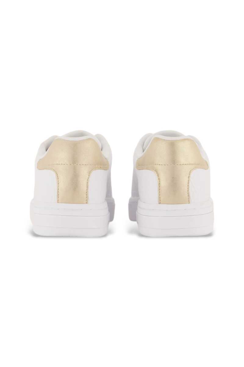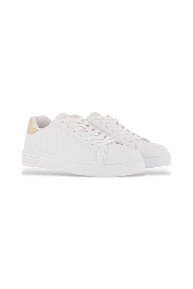 Klasik kort stilini modern ve lüks detaylarla yeniden yorumlayan bu sneaker, günlük şıklığınıza iddialı bir dokunuş katıyor. Yan panellerini kaplayan dikkat çekici kabartma monogram deseni, ayakkabıya sofistike bir doku kazandırır. Monokrom beyaz tasarımı, topuğundaki parlak metalik detayla zarafetini tamamlar. Her adımda konfor ve stili bir arada sunar.