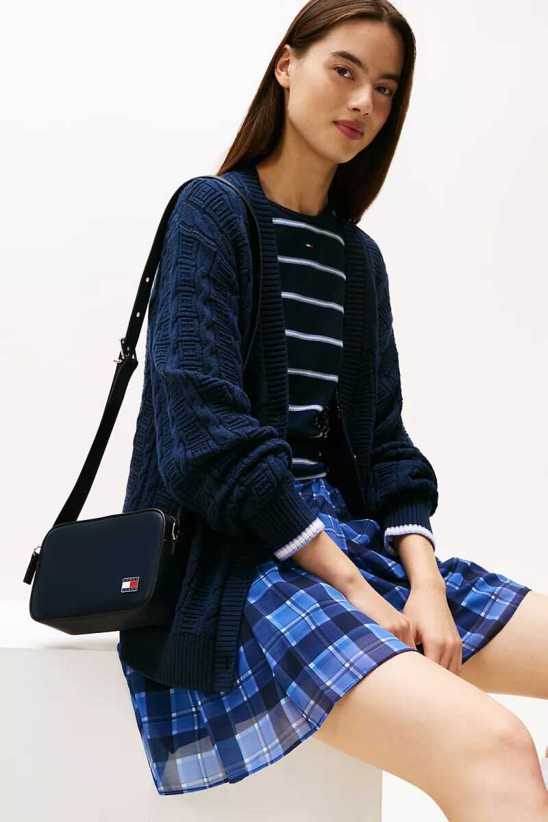 Klasik ve pratik bir aksesuar olan bu kamera çantası, temel eşyalarınızı şık ve kompakt bir formda düzenlemek için idealdir. Pürüzsüz poliüretan malzemeden üretilen çanta, her kombine uyum sağlayan zamansız lacivert rengine sahiptir. Fermuarlı ana bölmesi günlük ihtiyaçlarınız için güvenli bir alan sunar. Ayarlanabilir askısı, çantayı omuzda veya çapraz olarak taşımanıza olanak tanıyarak eller serbest kullanım kolaylığı sağlar. Ön yüzündeki küçük metal amblem plakası, tasarıma rafine bir son dokunuş yapar.
