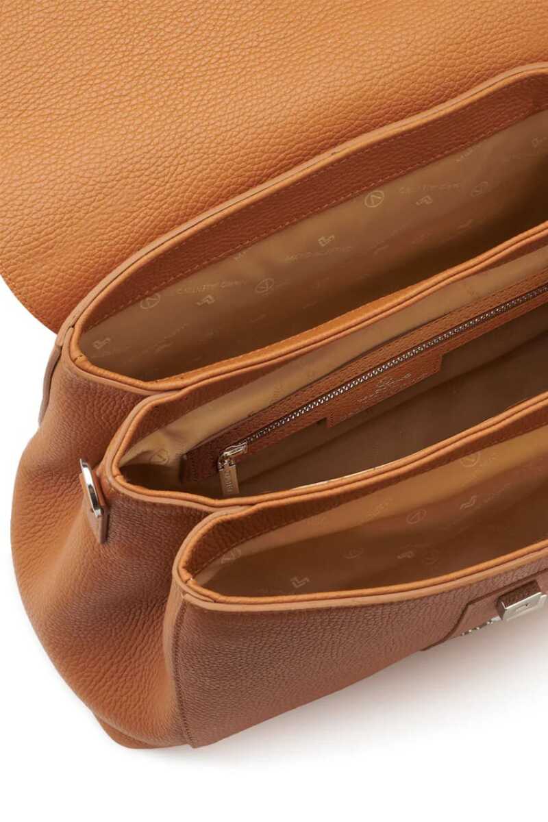 İtalyan lüksünü ve ustalığını gardırobunuza taşıyan bu el çantası, %100 dana derisi (Calfskin) dış yüzeyiyle zamansız bir şıklık sunar. Taba renginin sıcak ve zengin tonu, klasik çizgilerle buluşarak her kombine sofistike bir hava katar. Çantanın iç tasarımında kullanılan %100 Rip-Stop naylon astar, yırtılmalara karşı ekstra dayanıklılık sağlarken; geniş iç hacmi günlük eşyalarınız için ideal bir kullanım alanı yaratır. İster kısa sapıyla elde, ister 65 cm'lik uzun askısıyla omuzda kullanabileceğiniz bu tasarım, hem ofis stilinizde hem de özel davetlerde zarif bir tamamlayıcıdır.
