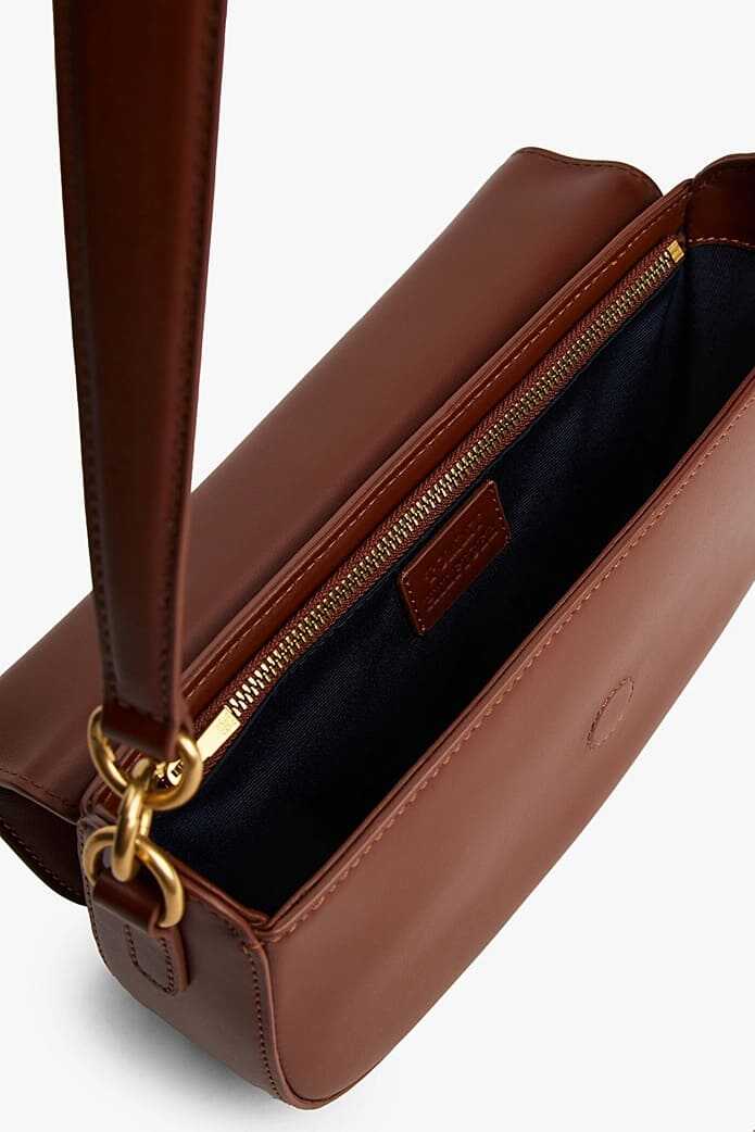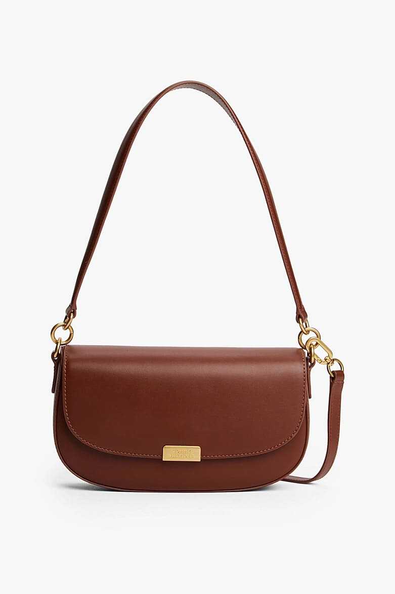 Kadın Kapaklı Metal Logolu Omuz Çantası - Taba