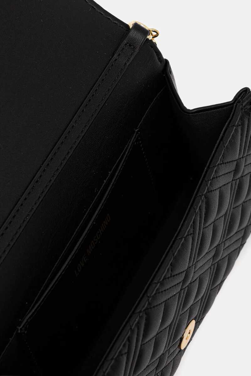 Geometrik kapitone dikişleri ve zarif yapısıyla öne çıkan bu omuz çantası, stilinize sofistike bir dokunuş katıyor. Siyah rengin asaleti, yumuşak dokulu yüzey ve ön kapaktaki parlak altın rengi metal logo plakası ile buluşuyor. Zincir detaylı askısı sayesinde omzunuzda veya çapraz olarak rahatça taşıyabileceğiniz bu model, kompakt boyutlarıyla hem günlük kullanım hem de gece davetleri için ideal bir tamamlayıcıdır.
