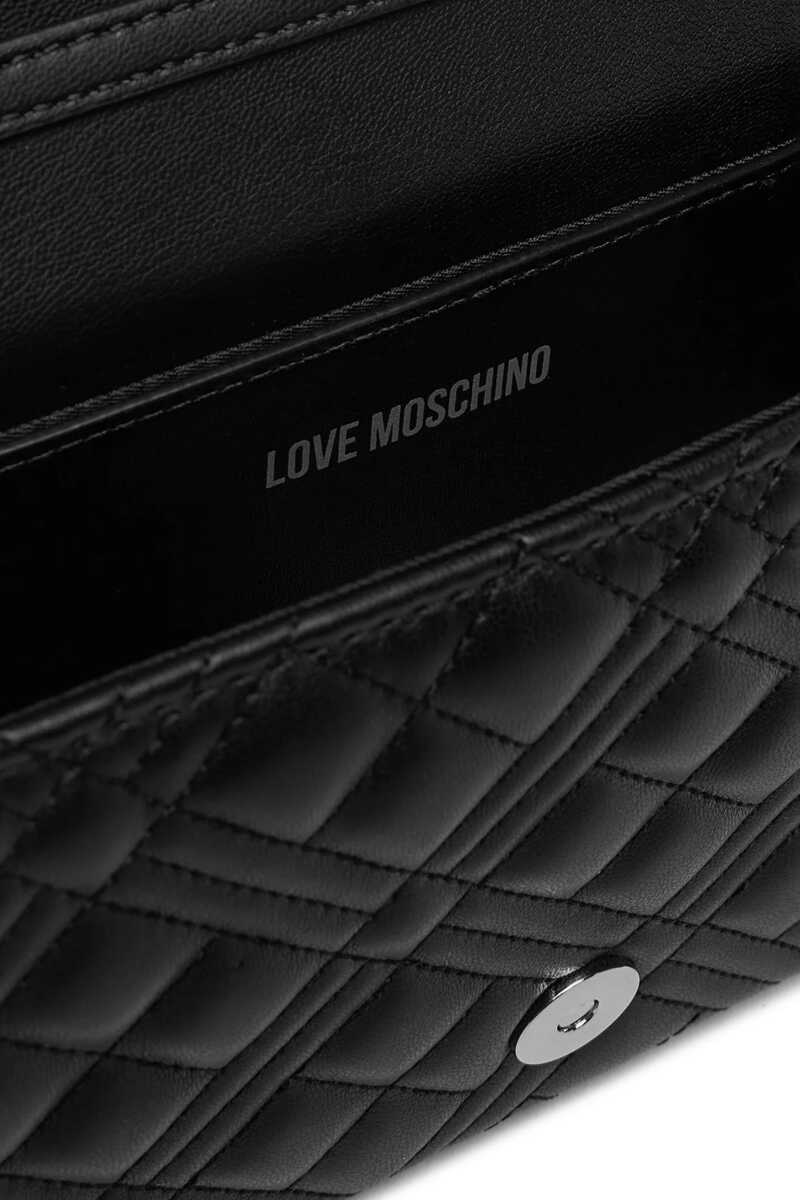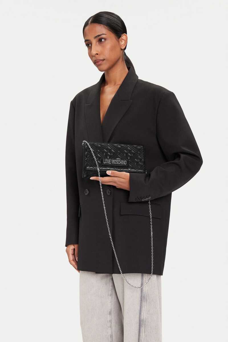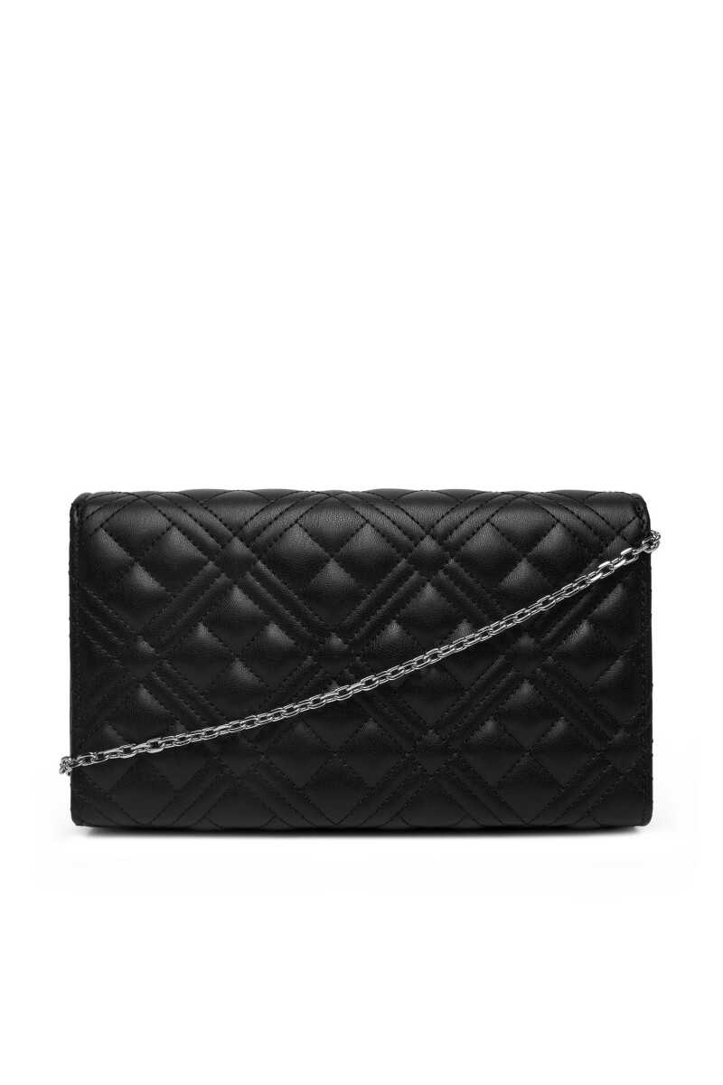 Geometrik kapitone dikişleri ve zarif yapısıyla öne çıkan bu omuz çantası, stilinize sofistike bir dokunuş katıyor. Siyah rengin asaleti, yumuşak dokulu yüzey ve ön kapaktaki parlak gümüş renkli metal logo plakası ile buluşuyor. Zincir detaylı askısı sayesinde omzunuzda veya çapraz olarak rahatça taşıyabileceğiniz bu model, kompakt boyutlarıyla hem günlük kullanım hem de gece davetleri için ideal bir tamamlayıcıdır.