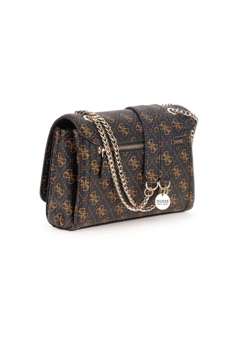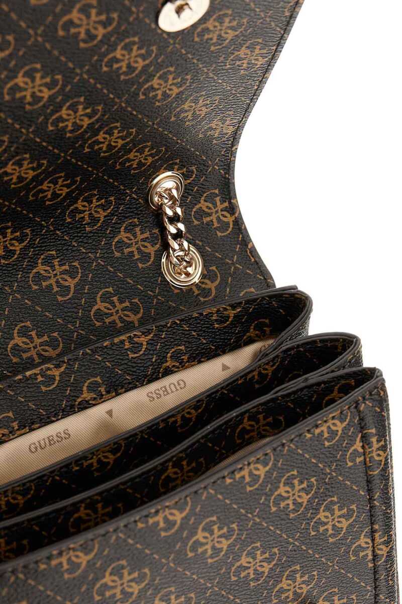 Klasik ve modern detayları bir araya getiren bu omuz çantası, kapitone dikişlerle zenginleştirilmiş monogram desenli bir yüzeye sahiptir. Çoklu bölmeli iç tasarımı ve arka yüzeyindeki fermuarlı cebi, eşyalarınızı düzenli bir şekilde organize etmeniz için fonksiyonel bir yapı sunar. Parlak zincir detaylı omuz askısı ve ön kapak üzerindeki üçgen formlu metal aksesuar, çantanın şık tasarımını tamamlar.