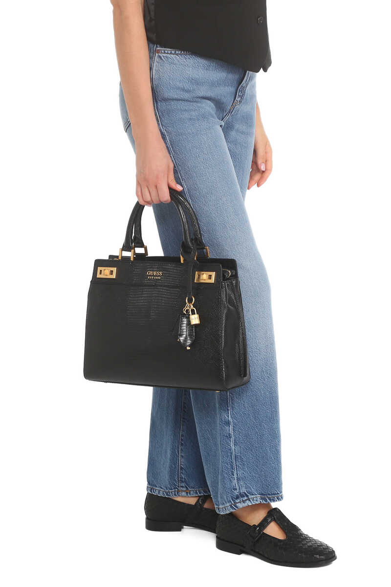 Kadın Katey Timsah Desenli El Çantası-Siyah