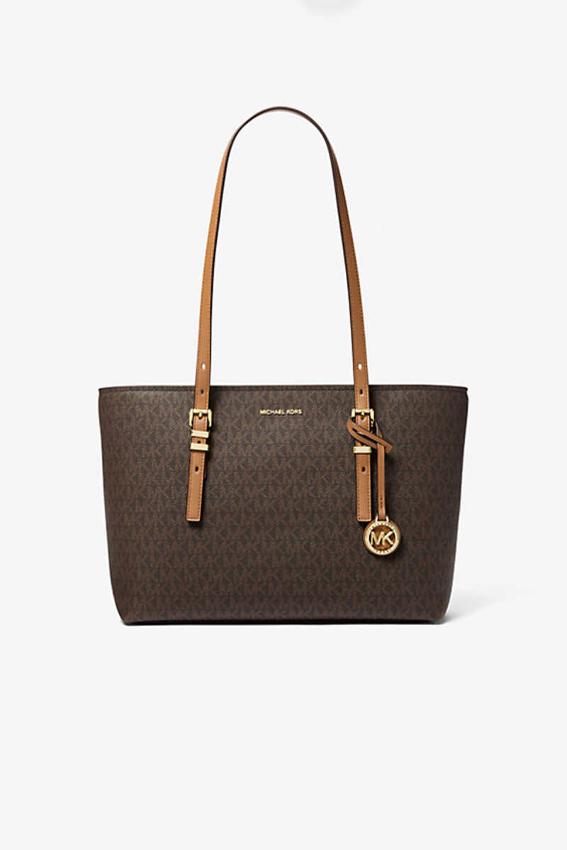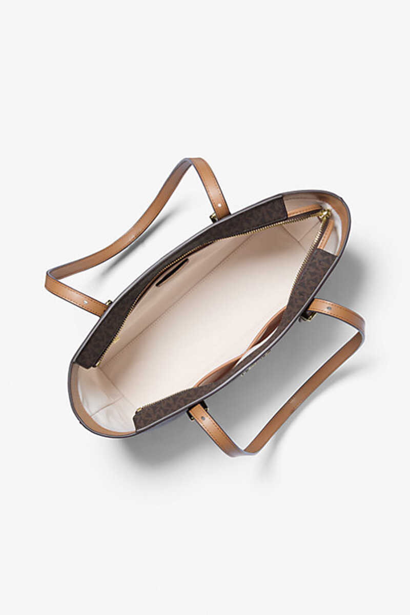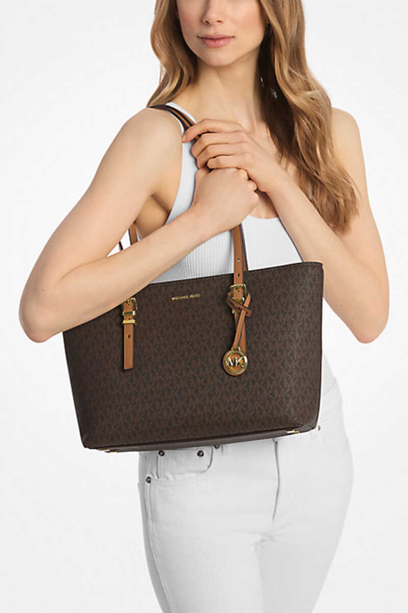Michael Kors'un klasikleşen Md Ew Tz Tote modeli, markanın ikonik kahverengi monogram desenini şık taba rengi detaylarla birleştiriyor. Üstten fermuarlı (Top Zip) kapaması eşyalarınız için tam güvenlik sağlarken, ayarlanabilir omuz askıları kişisel konfor sunar. Geniş iç hacmi ve iç cepleri ile bu çanta, günlük kullanım için son derece fonksiyoneldir. Parlak altın rengi MK logo charm'ı, çantanın lüks ve tanınır tasarımını tamamlar.
