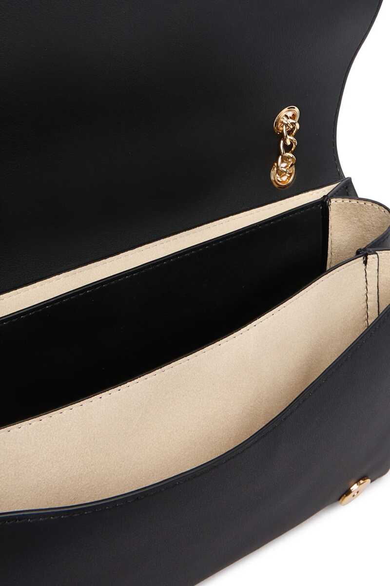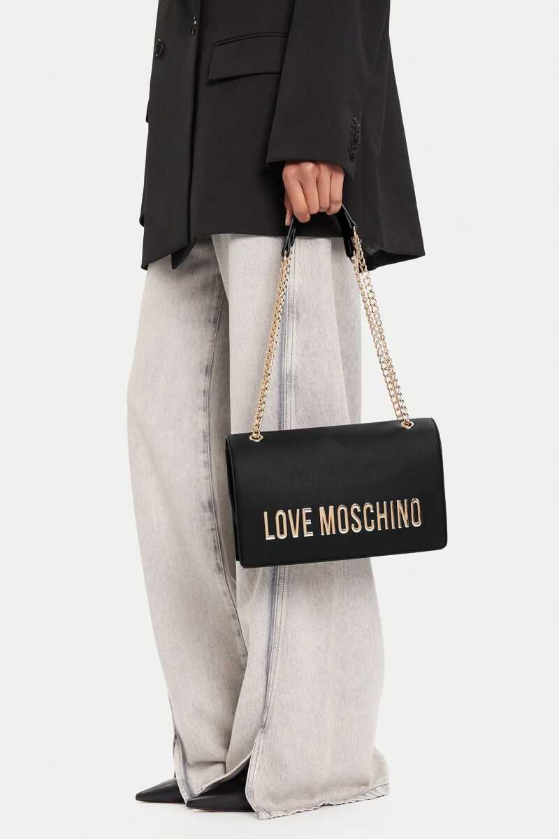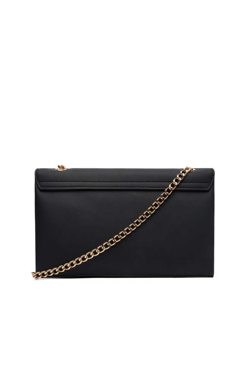 Günün her saati şıklığınızı tamamlayacak bu omuz çantası, zamansız siyah rengi ve çarpıcı detaylarıyla öne çıkıyor. Pürüzsüz dokulu yüzeyi, ön kapakta yer alan büyük ve parlak altın rengi metal harf detaylarıyla zenginleştirilerek lüks bir duruş sergiler. Zincir detaylı omuz askısı, hem konforlu bir kullanım sunar hem de tasarıma mücevher ışıltısı katar. Geniş iç hacmi ve kapaklı yapısı sayesinde eşyalarınızı güvenle taşıyabileceğiniz bu çanta, modern stilin vazgeçilmez bir parçasıdır.
